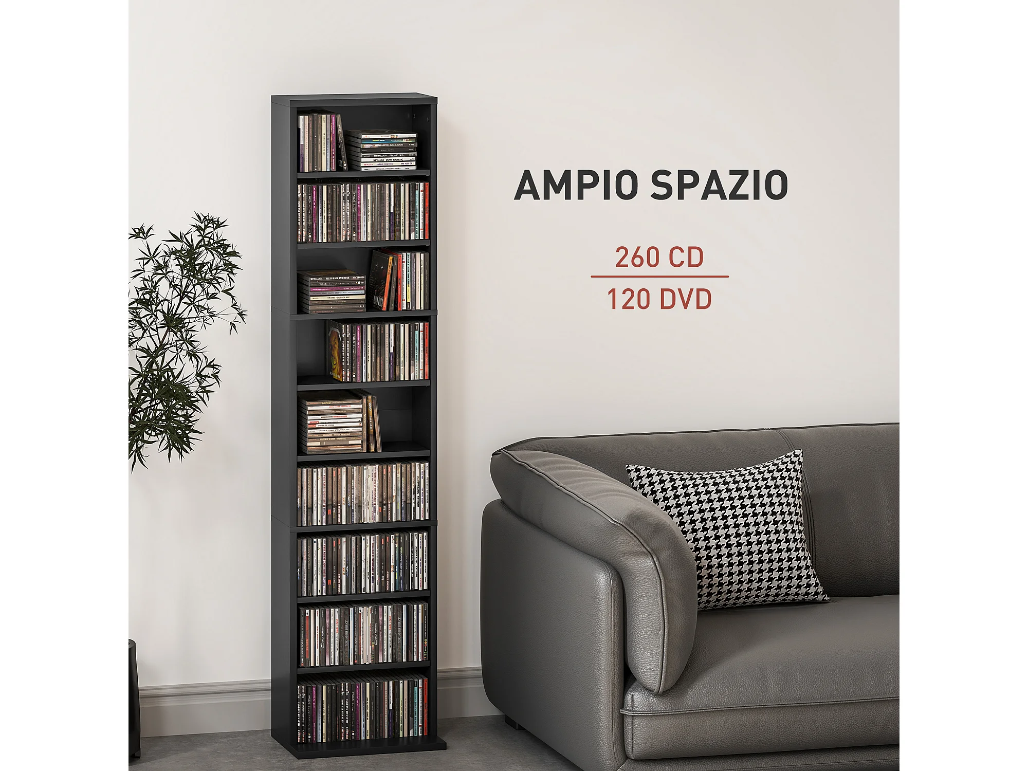 Mobile libreria a 8 ripiani per 360 cd dal design moderno
