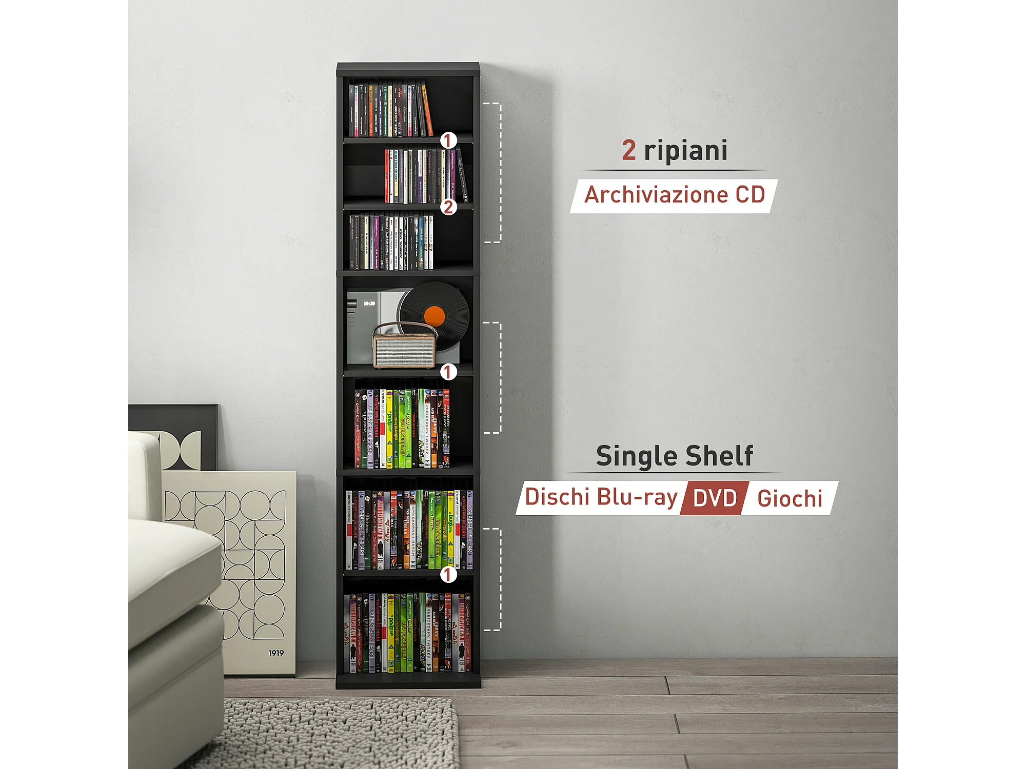 Scaffale porta cd con 6 ripiani regolabili alto 140 cm in legno nero
