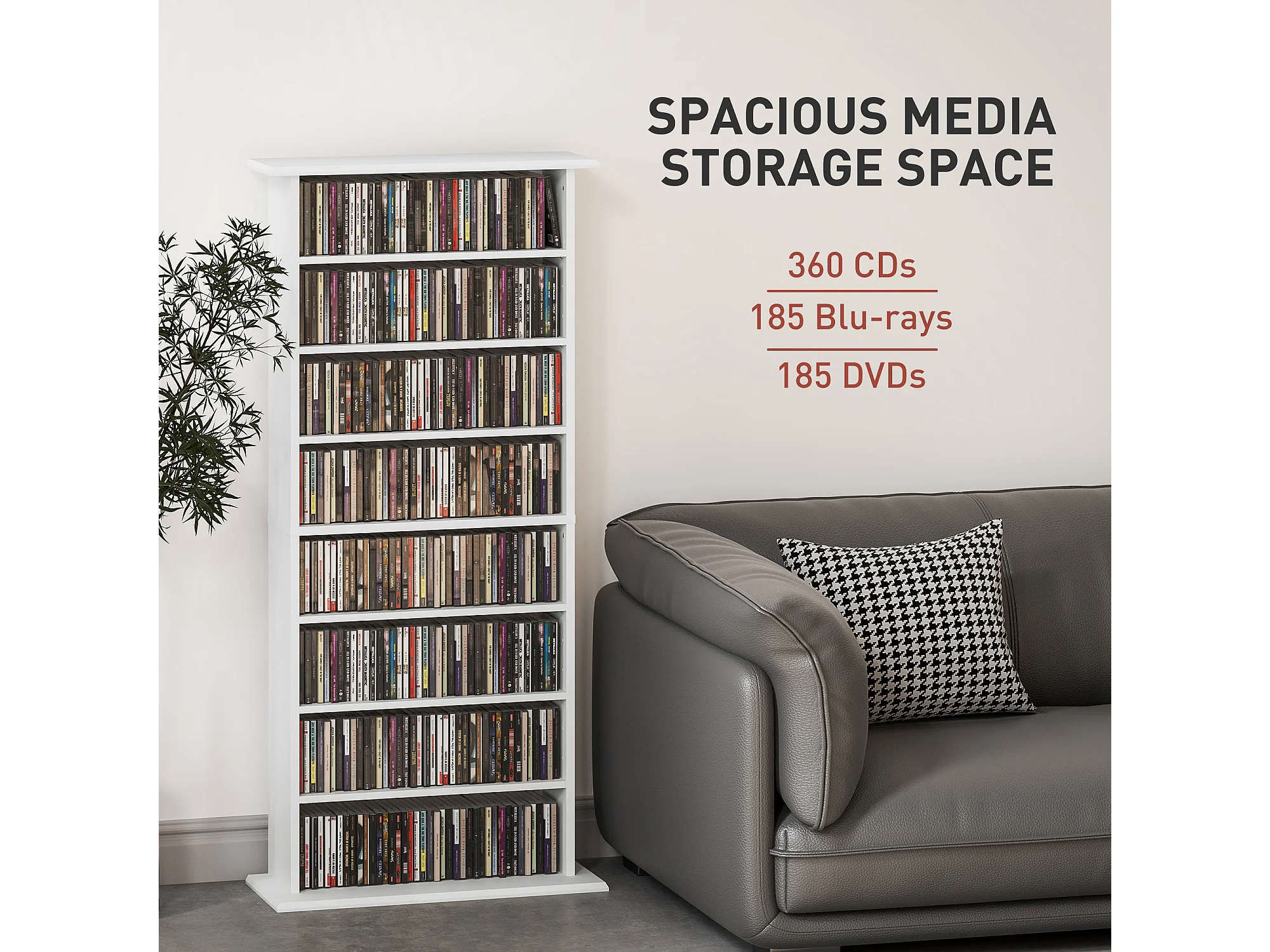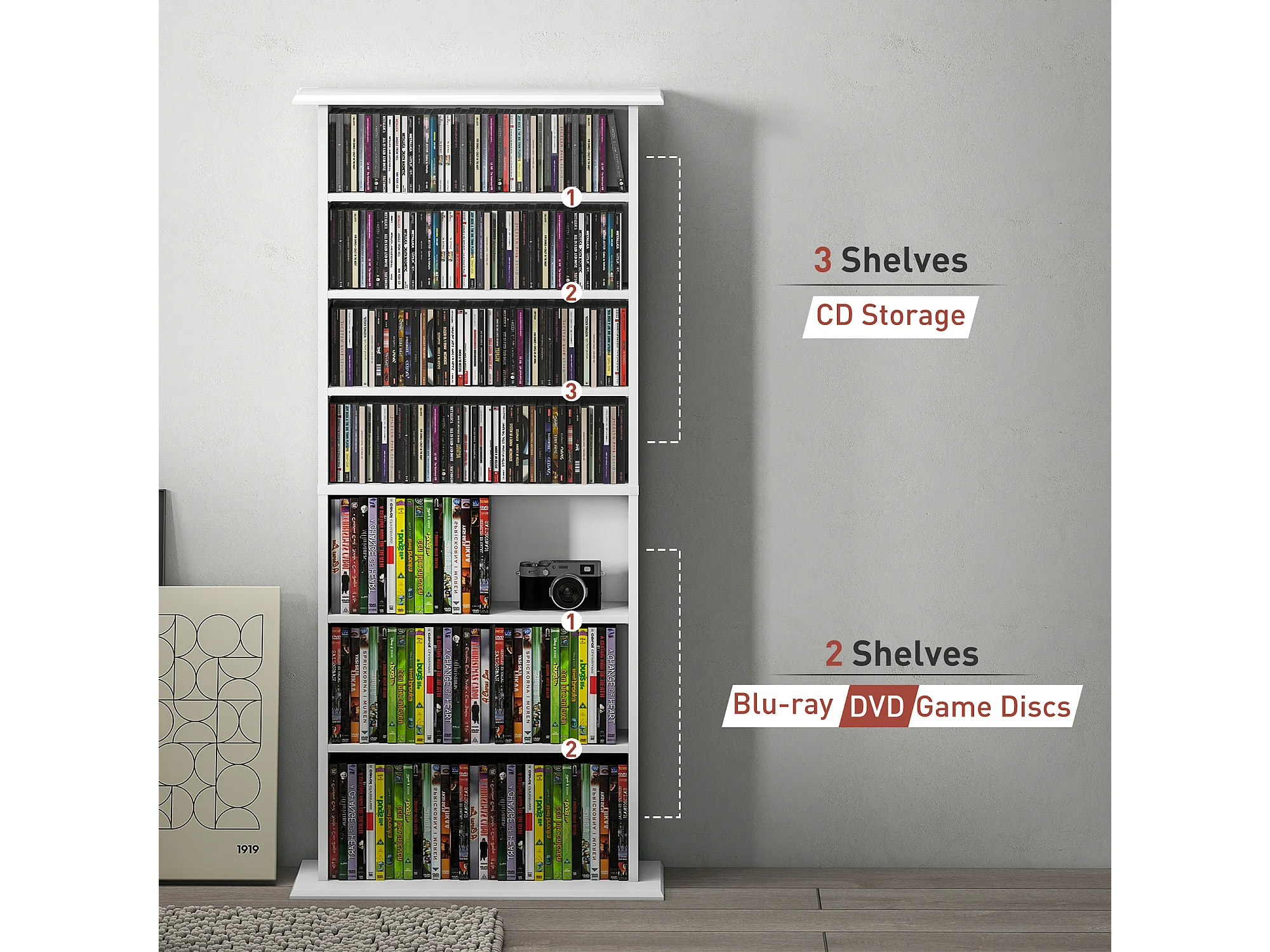 Scaffale porta cd con 14 ripiani regolabili in legno bianco