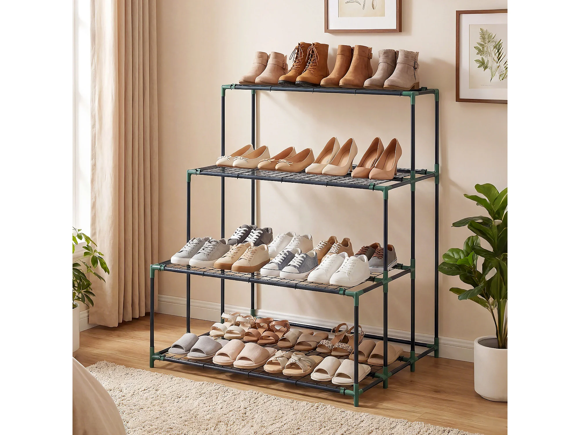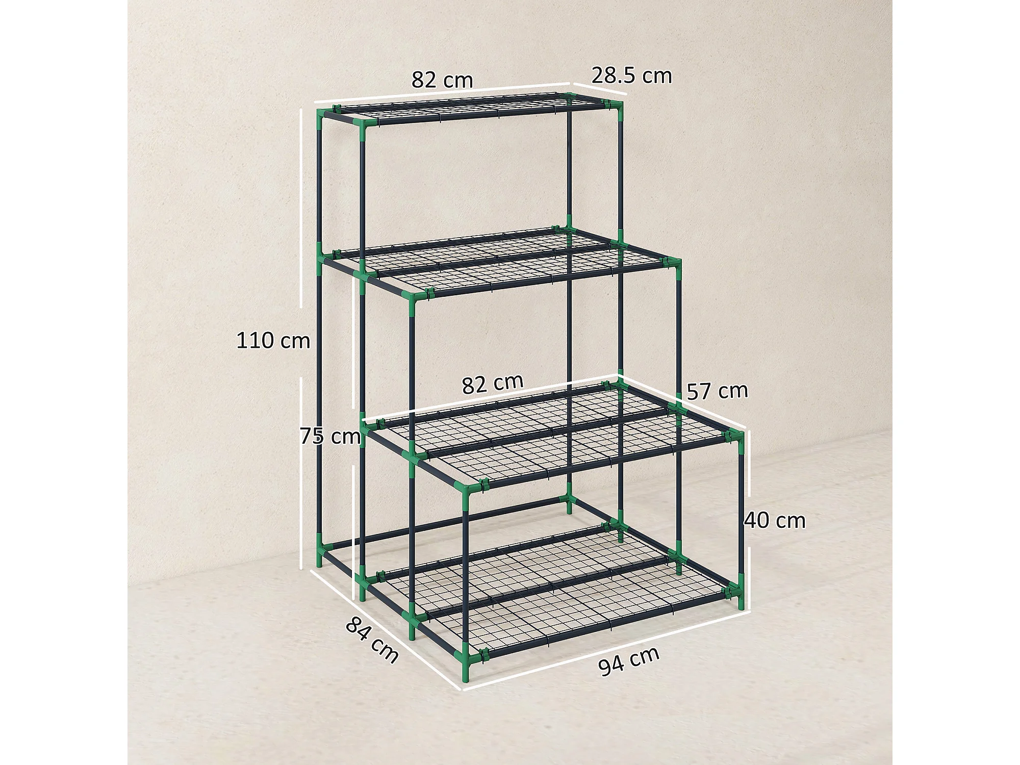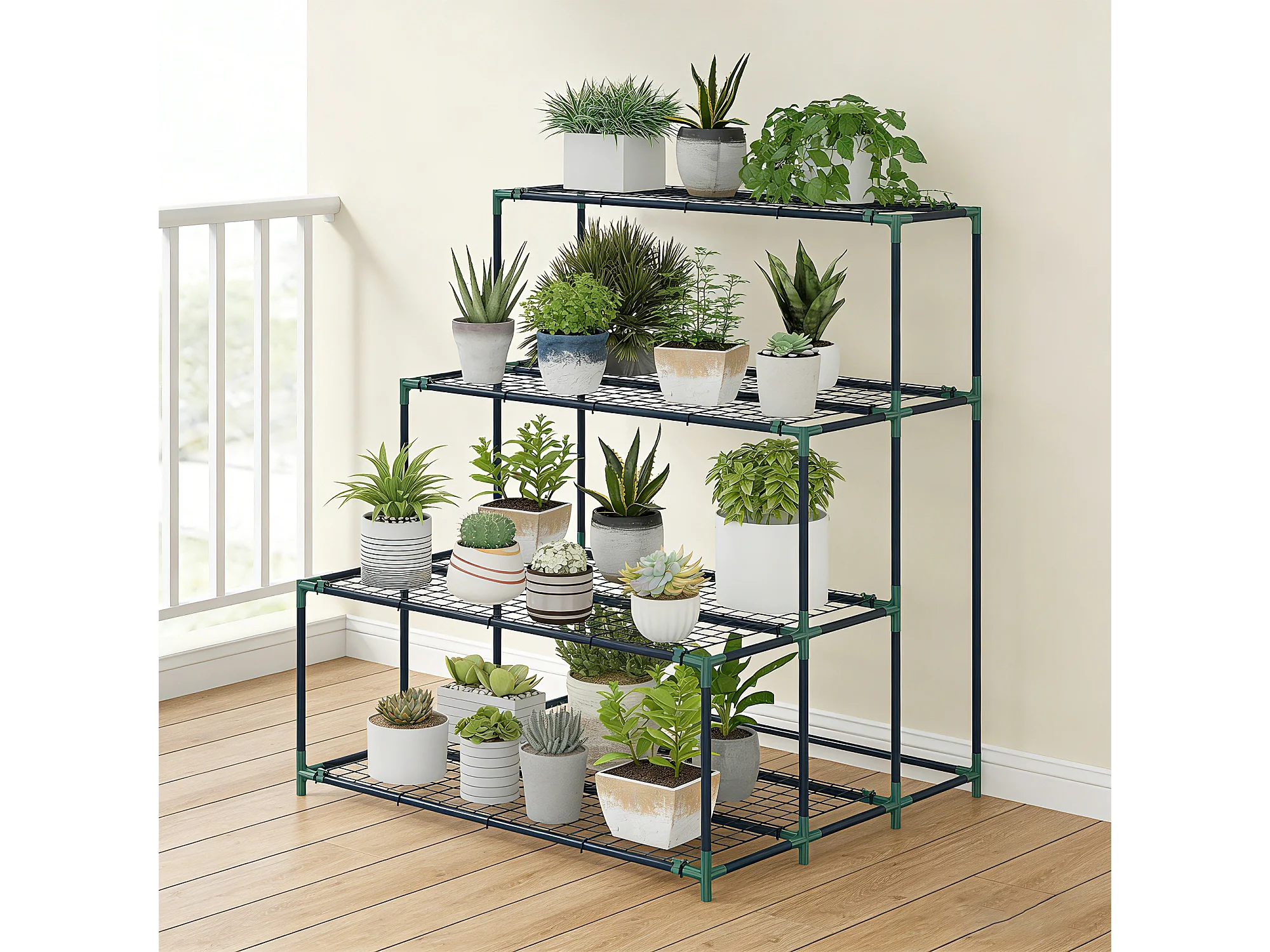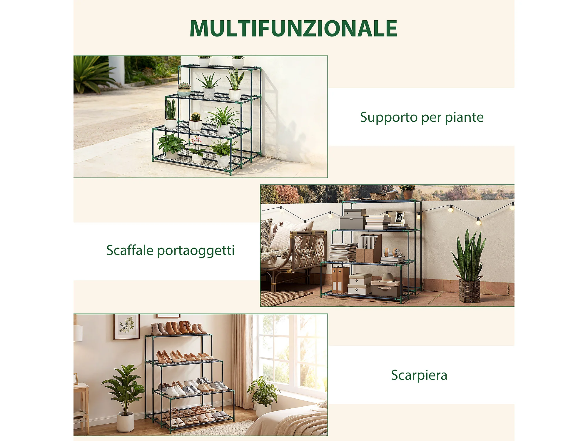 Scaffale porta piante a 4 livelli in acciaio verde scuro