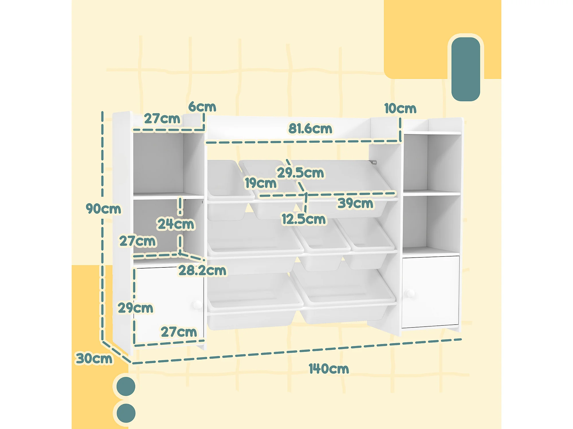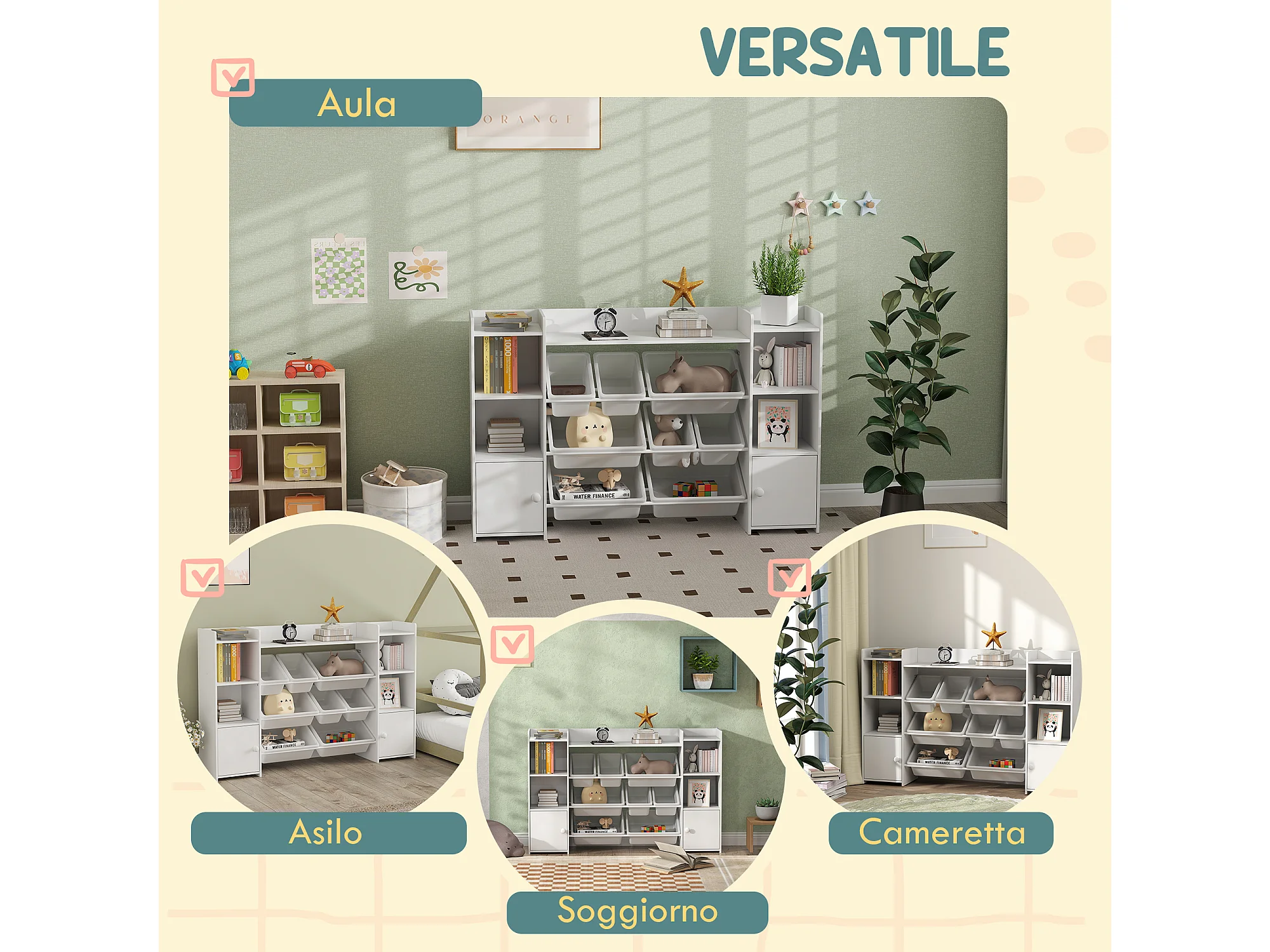 Mobile porta giochi per bambini, scaffale portagiochi con 11 cestini in tessuto, armadietto e ripiani