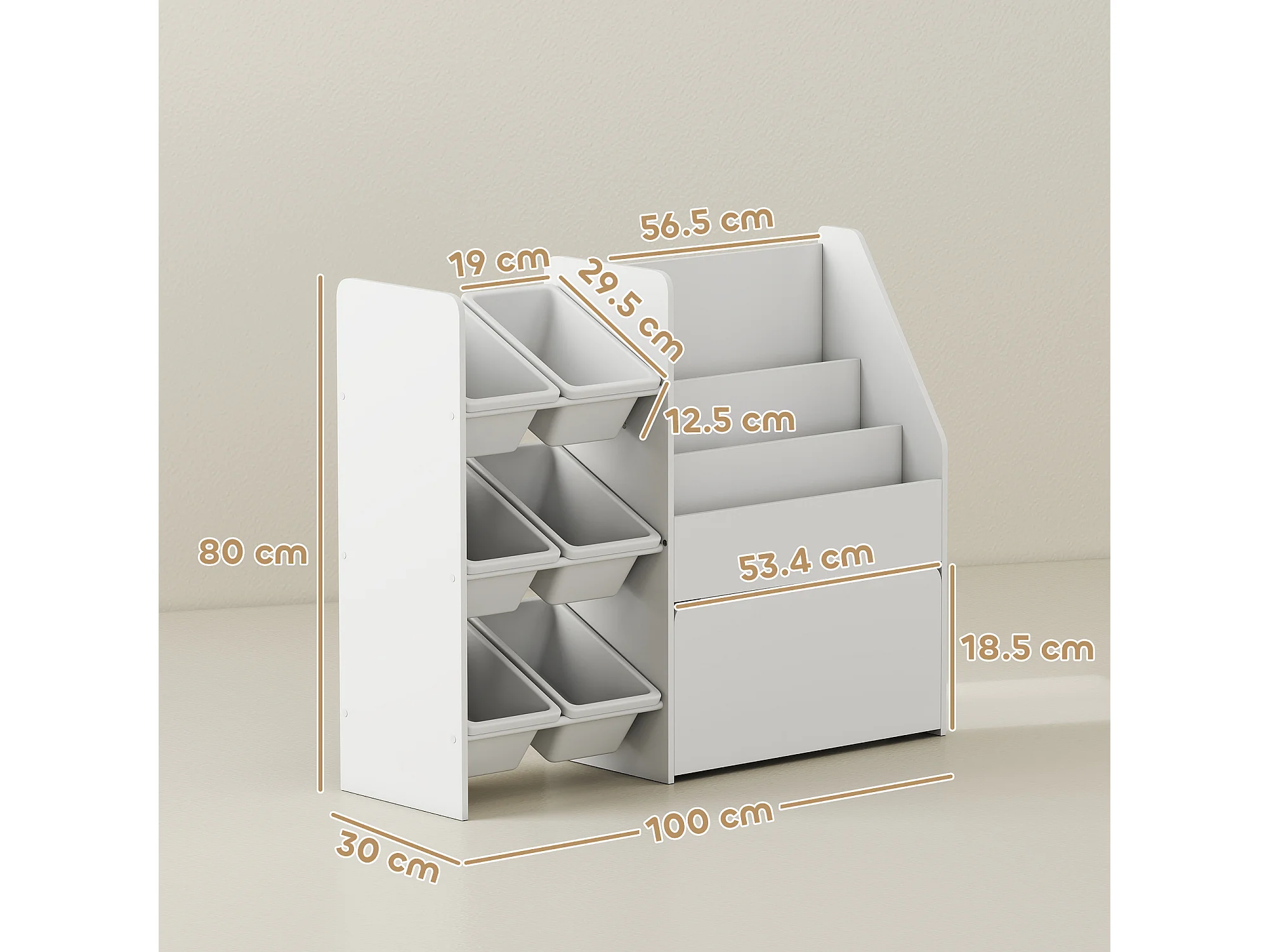 Mobile porta giochi per bambini, scaffale portagiochi con 11 cestini in tessuto, armadietto e ripiani