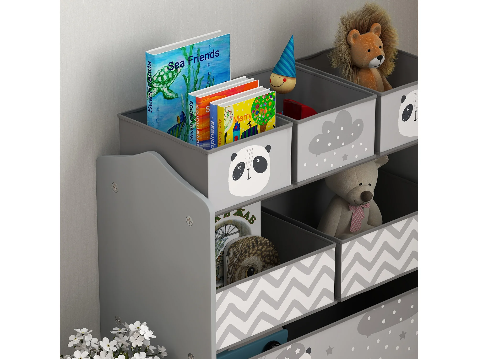 Mobiletto portagiochi con 9 cestini in legno mdf e tessuto