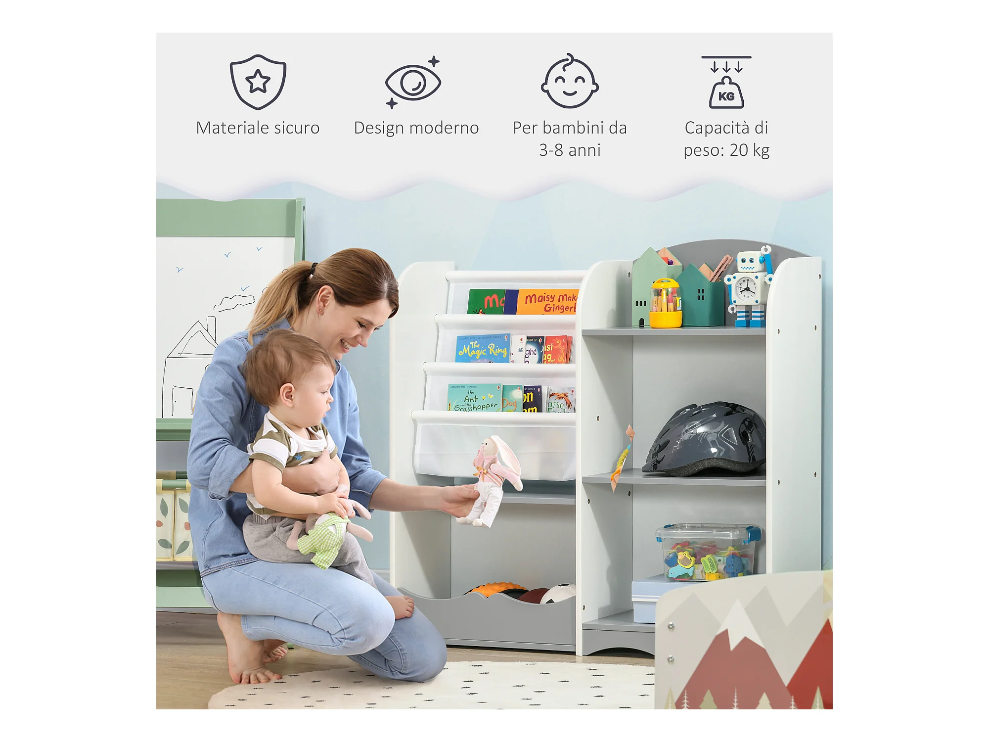 Scaffale portagiochi per bambini 85x26x84cm in legno grigio