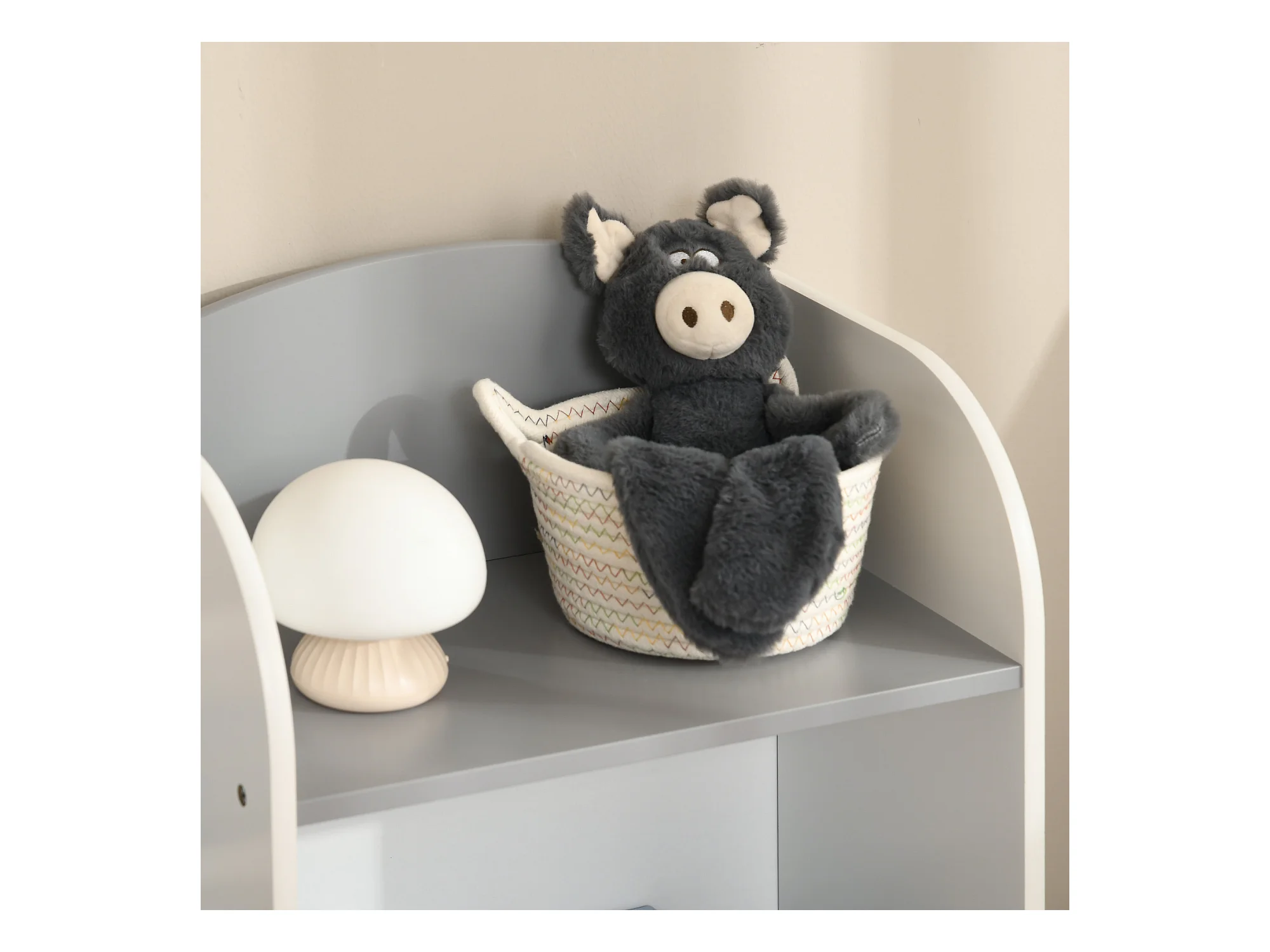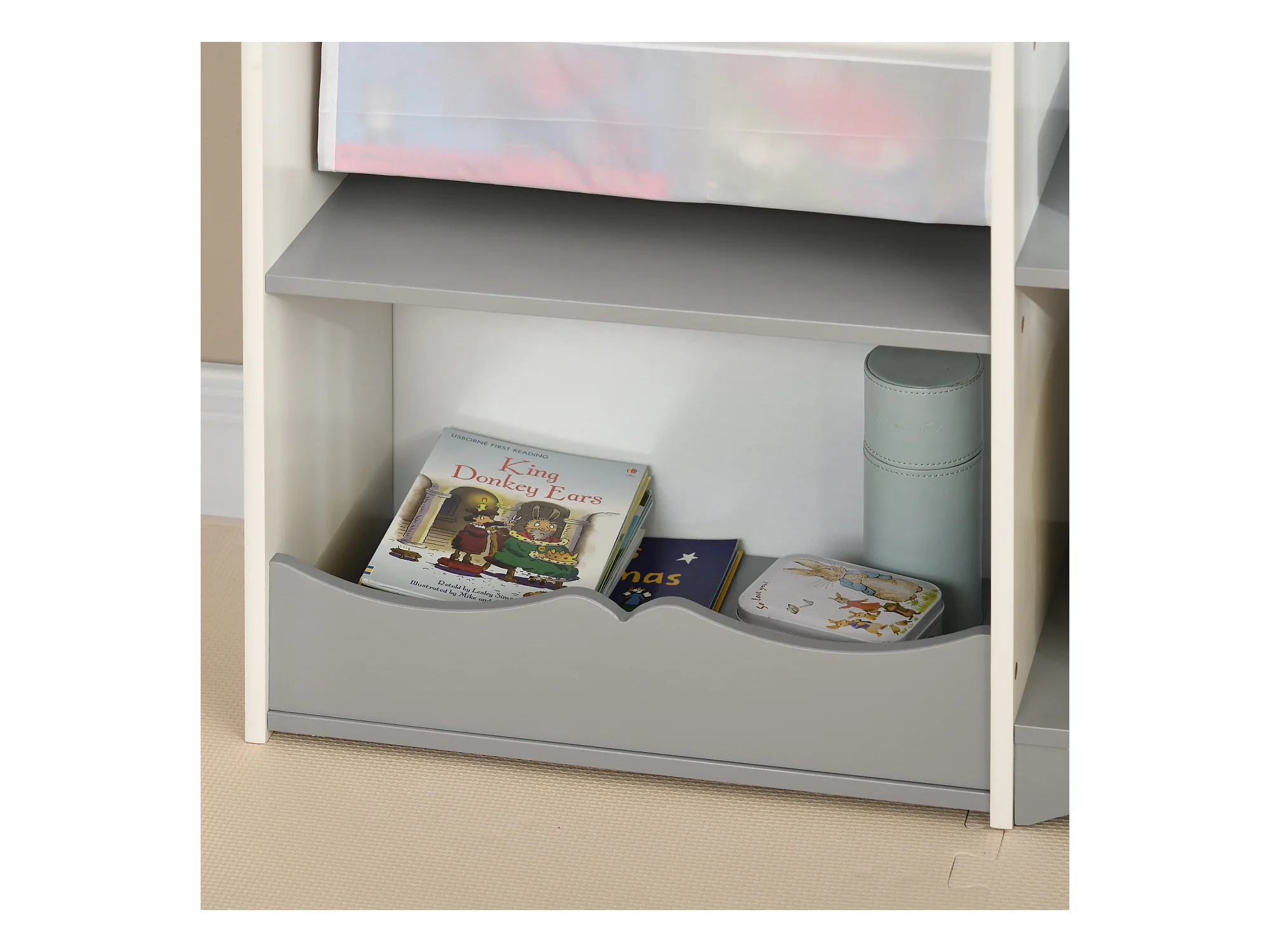Scaffale portagiochi con 6 contenitori in tessuto grigio