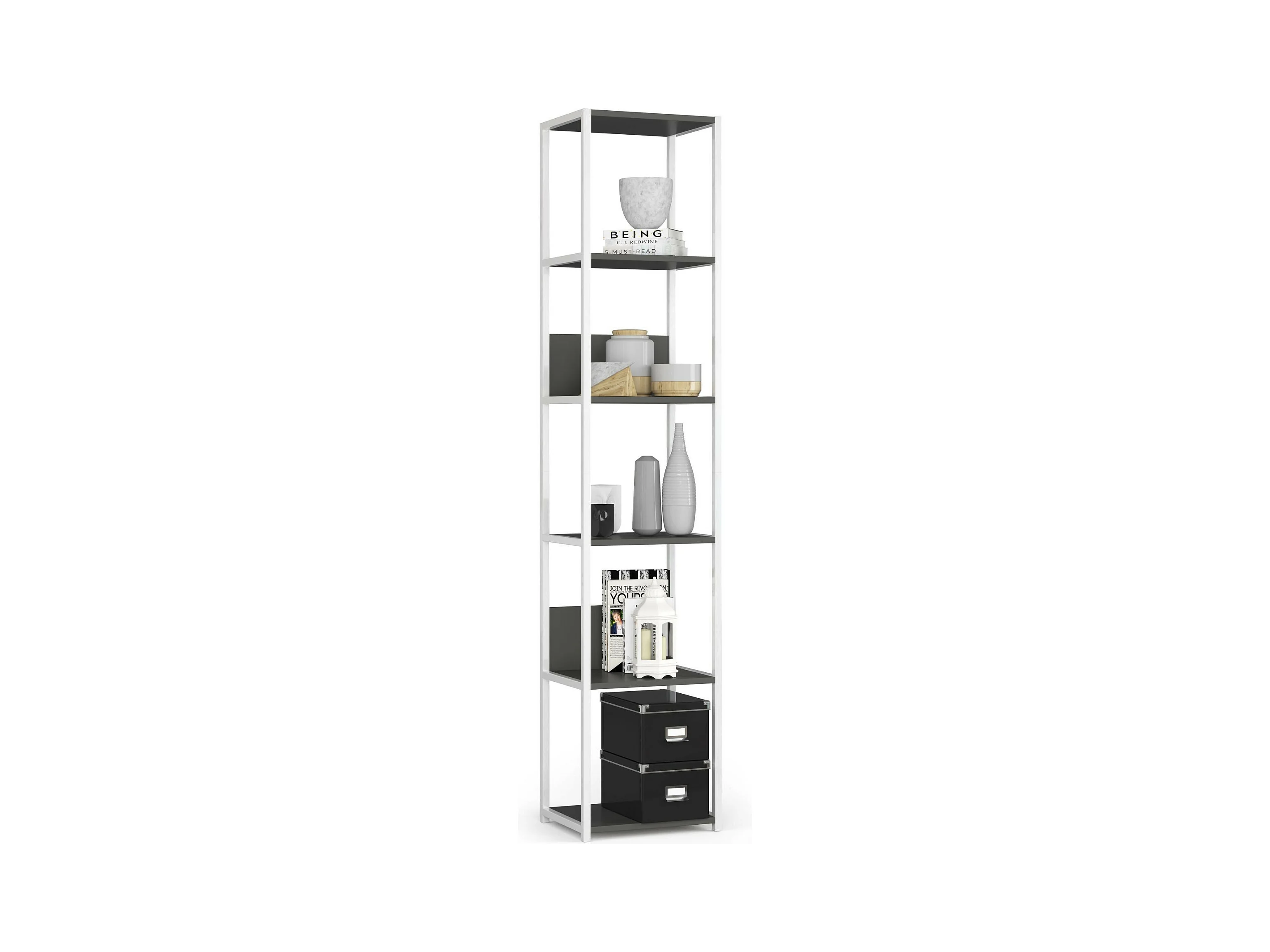 Scaffale stilo loft con ripiani in legno 60 cm Bianca 60 cm inserto frontale Grigio 60x32x192 cm