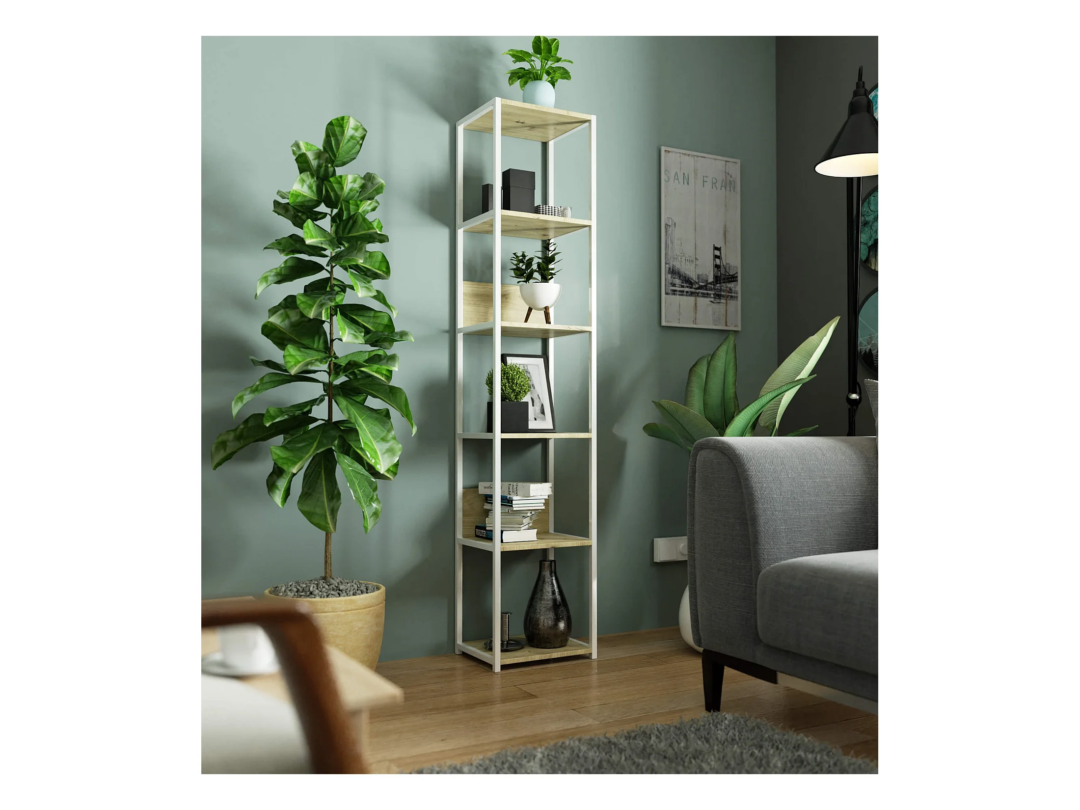 Scaffale stilo loft con ripiani in legno 50 cm Bianca 50 cm inserto frontale Quercia Artisan 50x32x192 cm