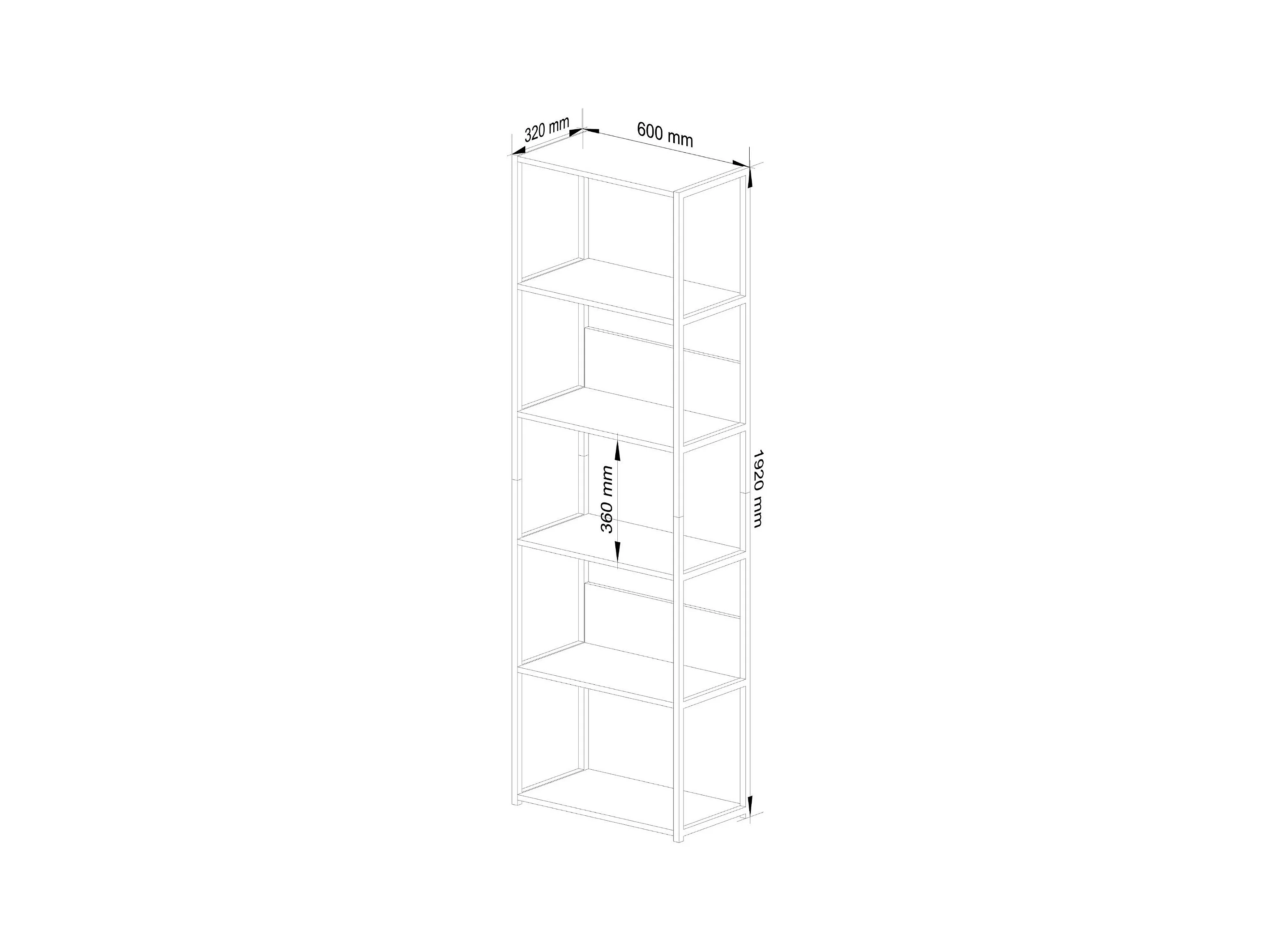 Libreria scaffale, 60x25x186cm, Soggiorno - Ufficio, Per libri, Cemento