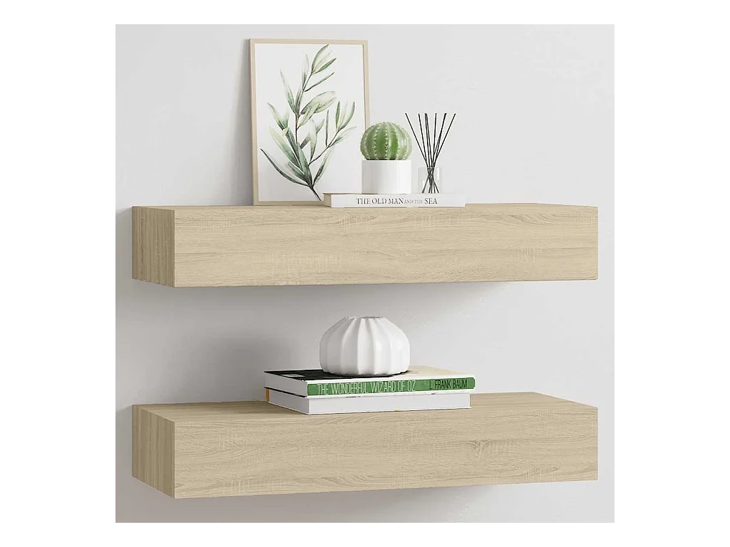 Scaffali con Cassetti da Parete 2 pz Rovere 60x23,5x10 cm MDF