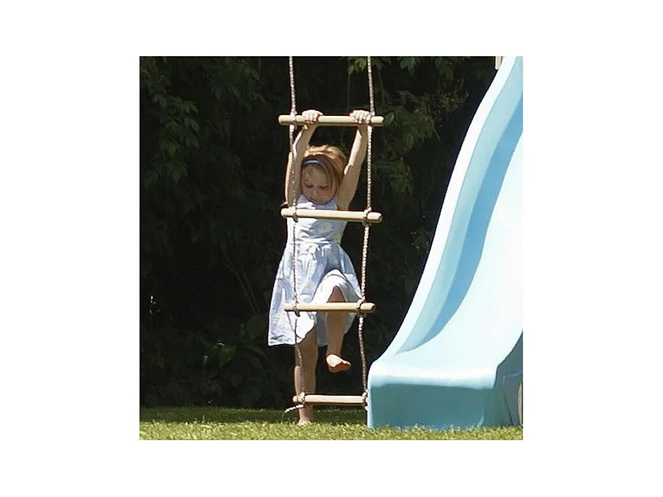 Altalena doppia per bambini - 239 x 240 x 169 cm - in legno - con scivolo e scaletta di risalita - Naturale