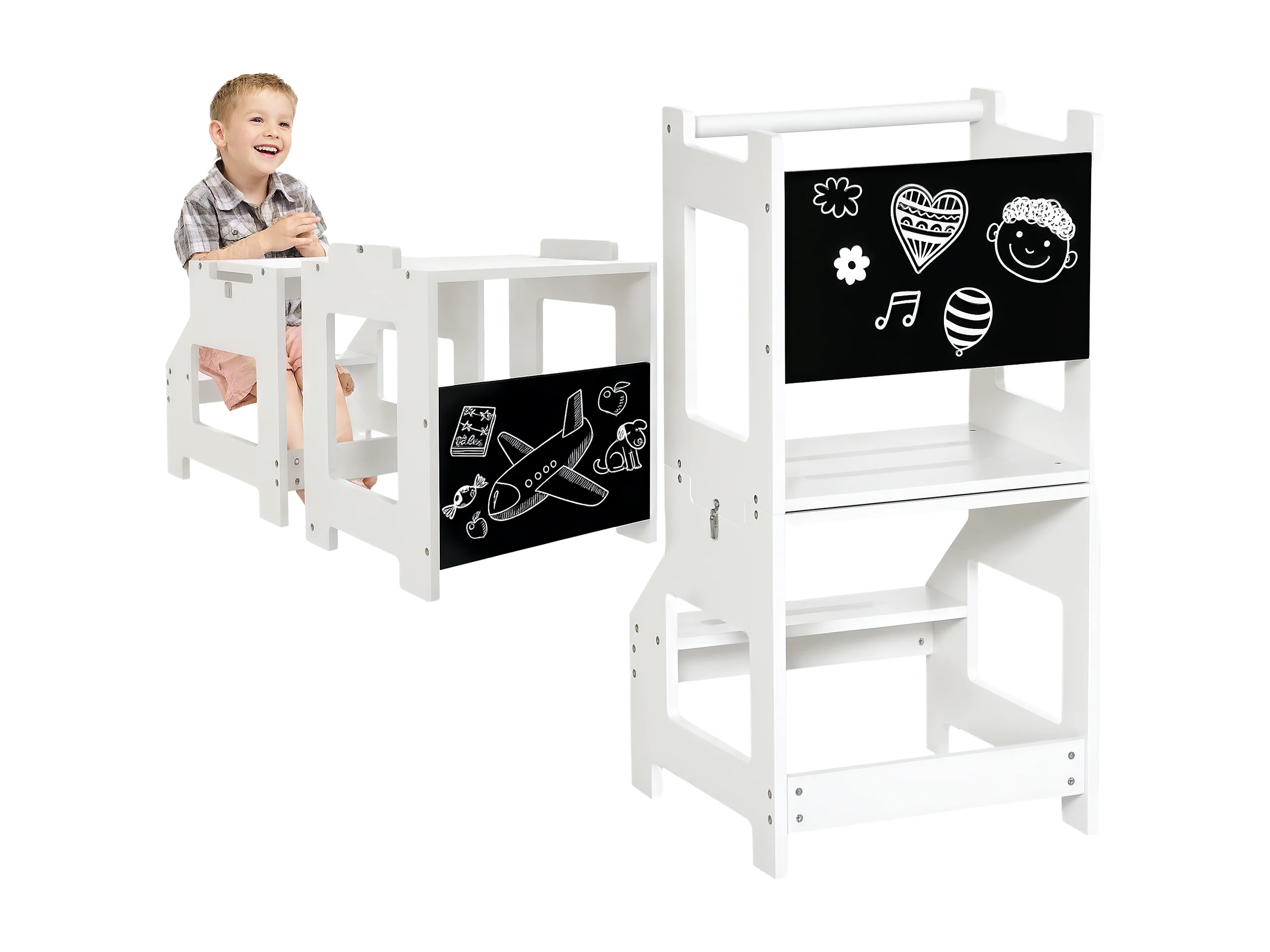Scala montessori 2 in 1 bambini 3-6 anni con lavagna bianco
