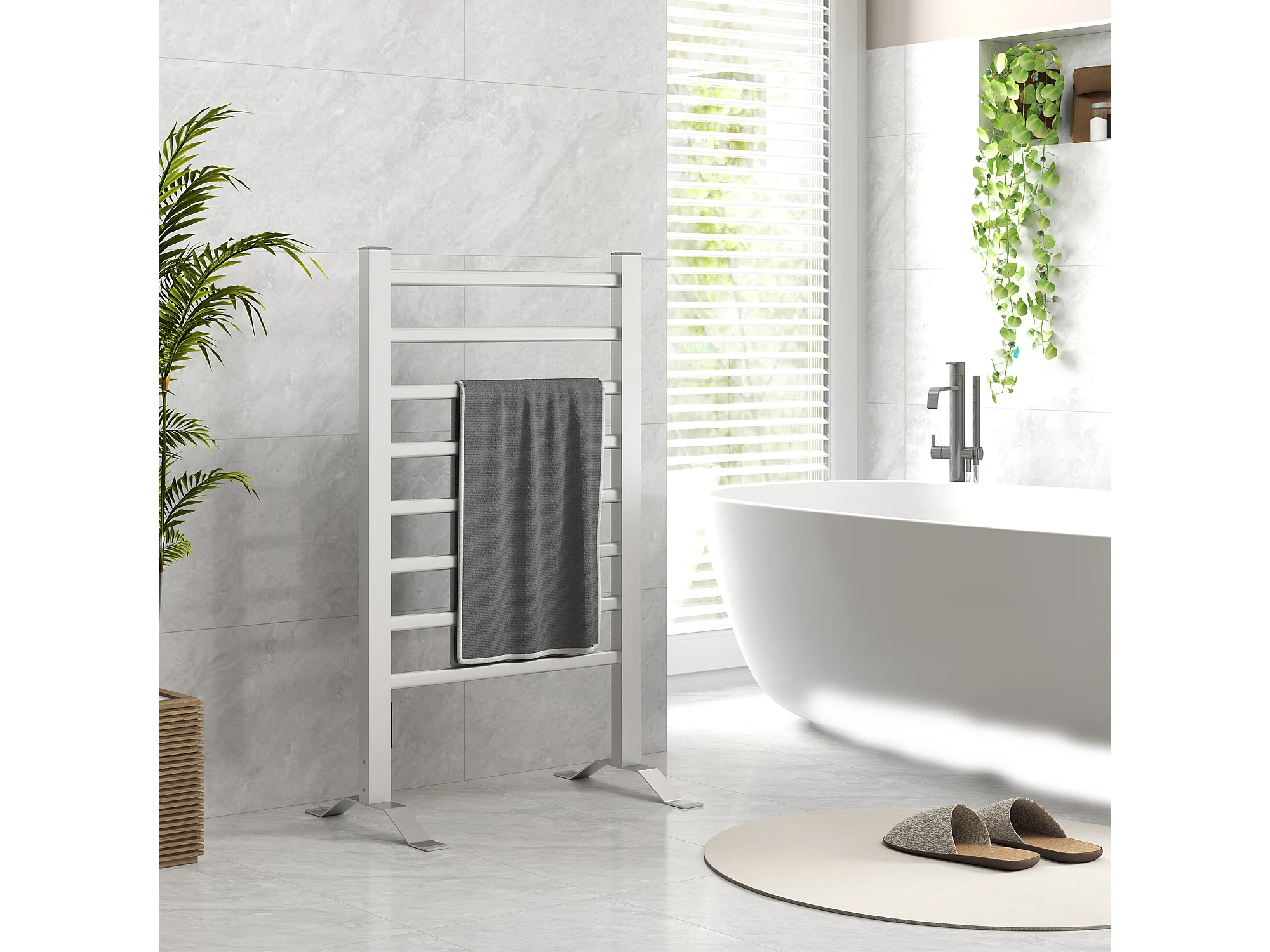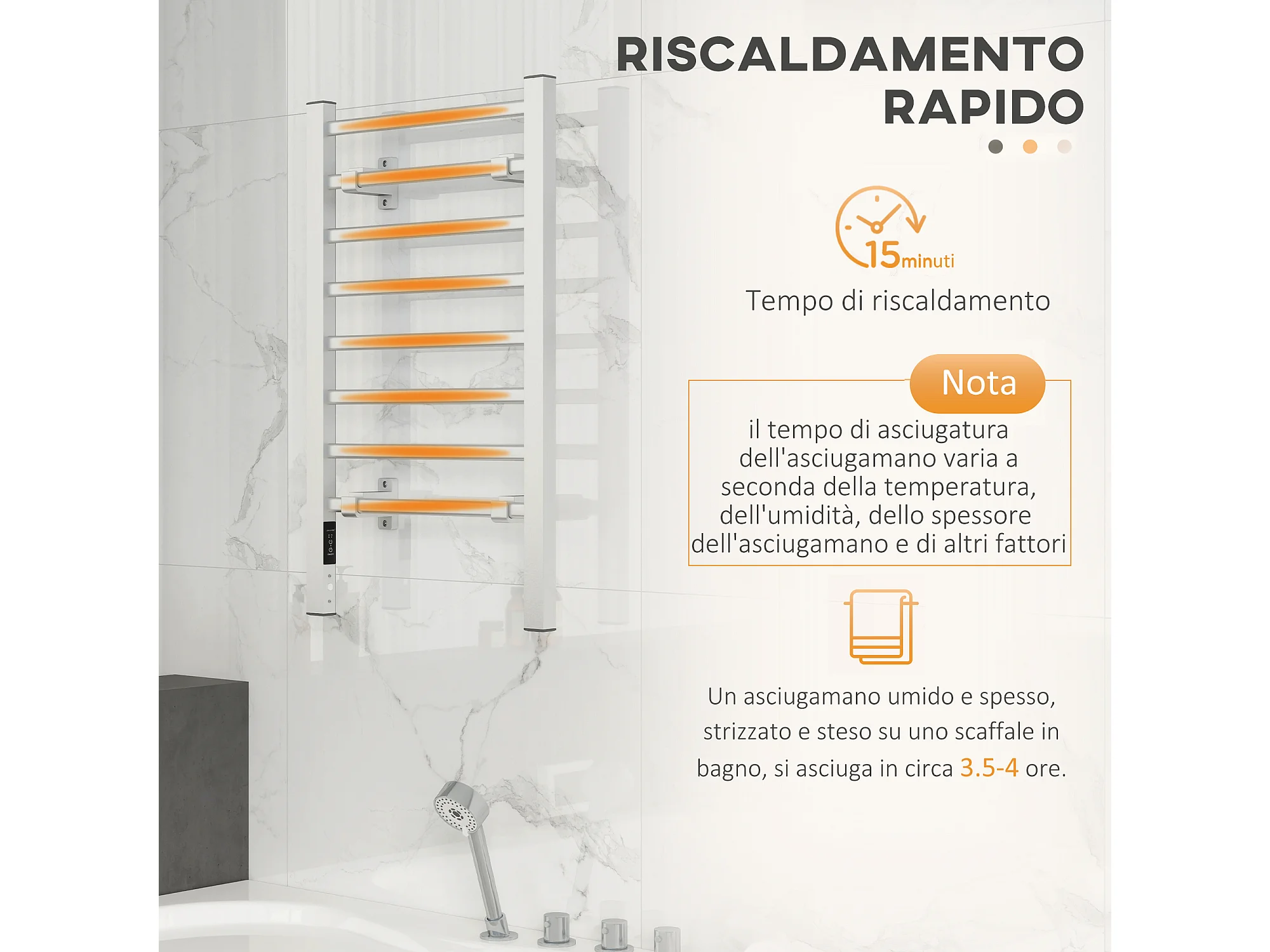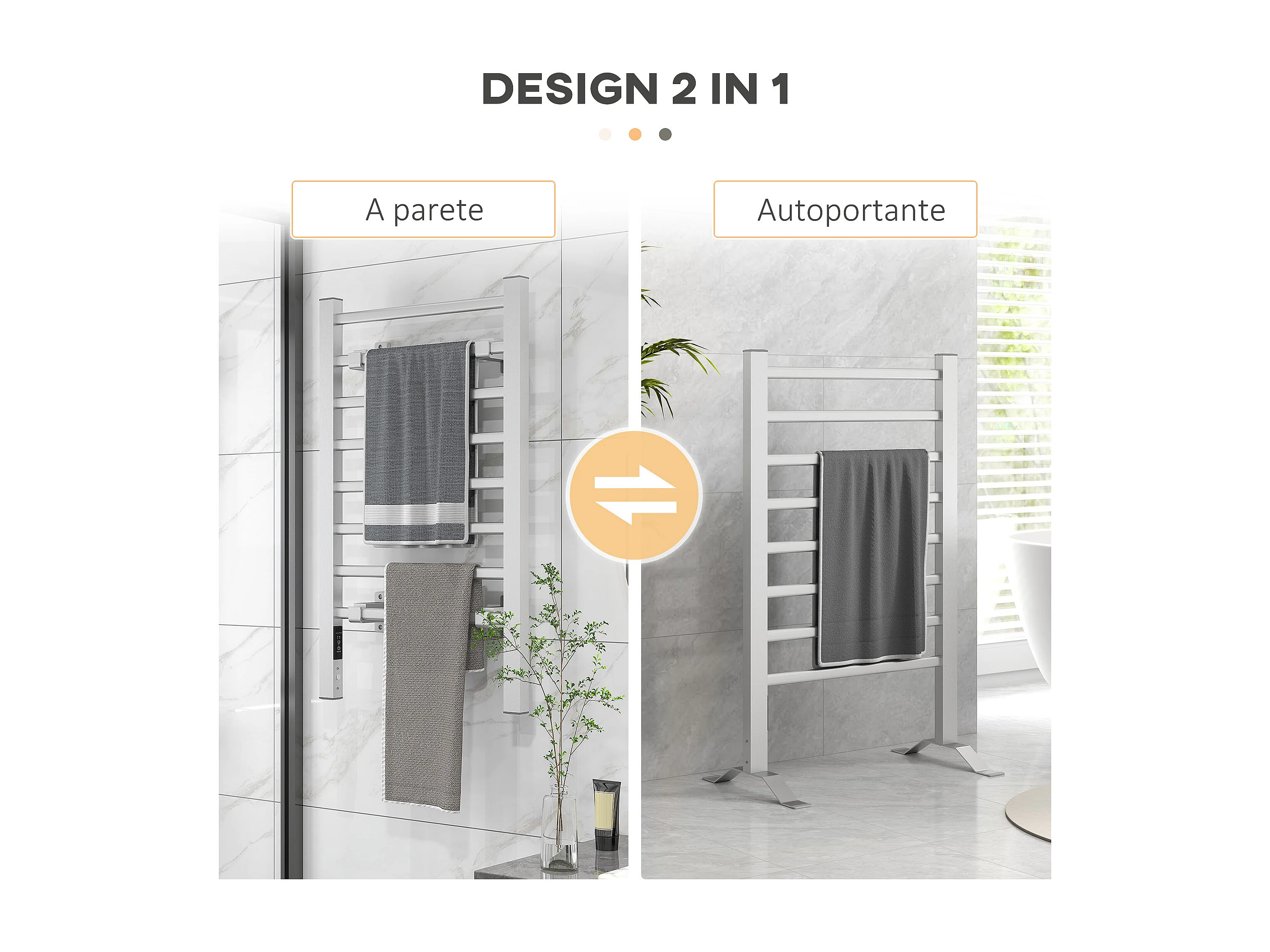 Scaldasalviette bagno elettrico da 150W con 8 barre e timer argento