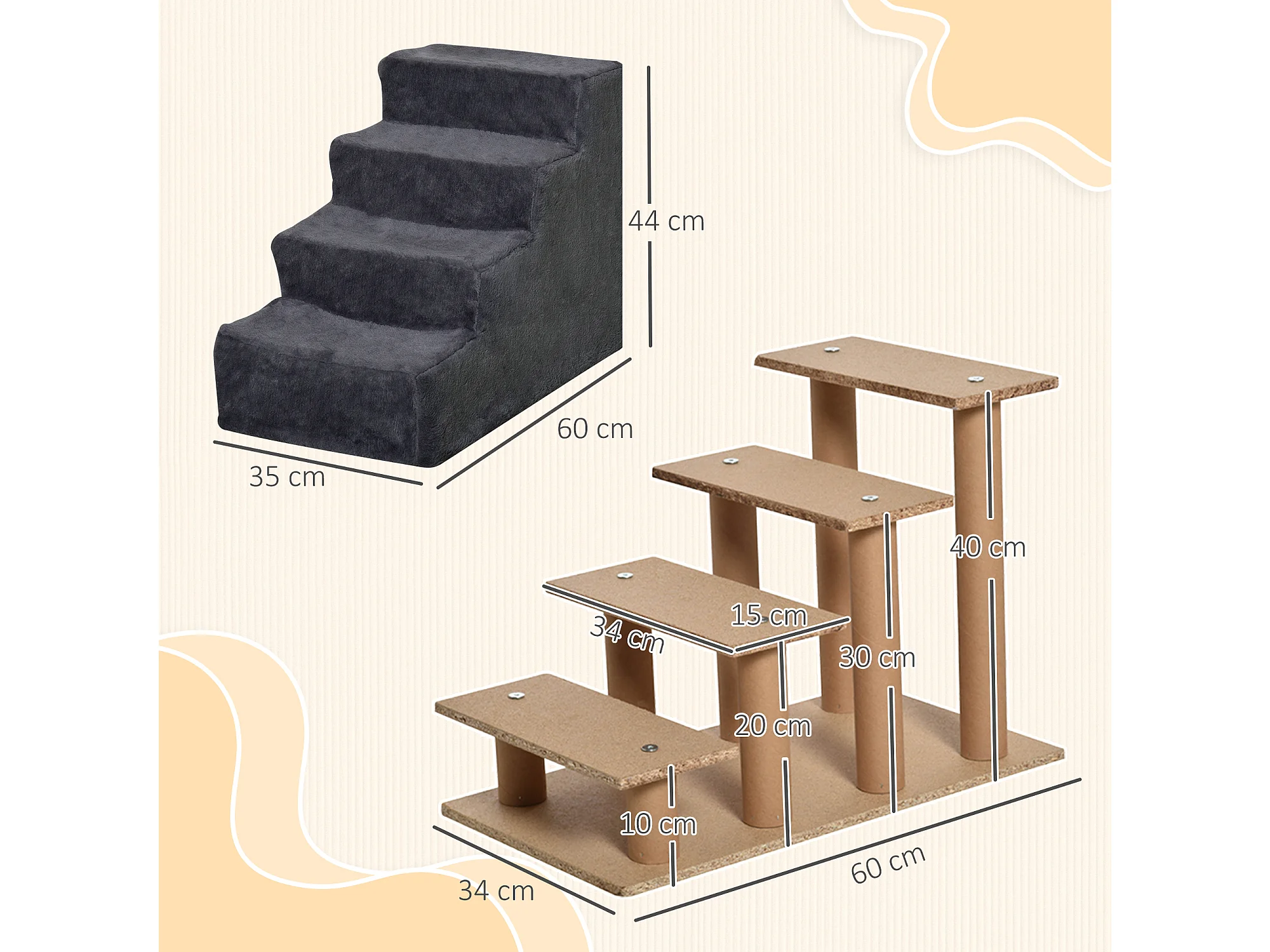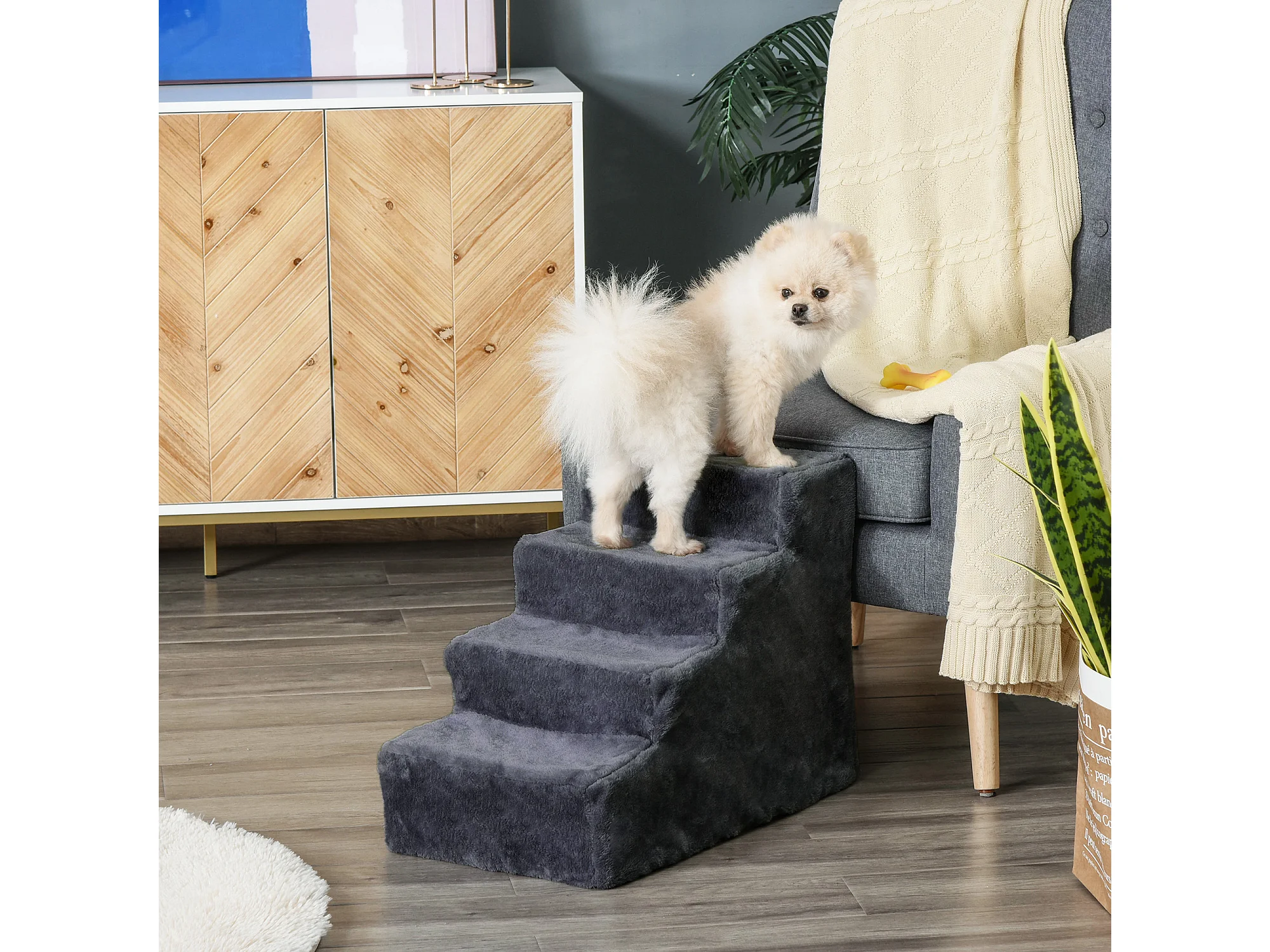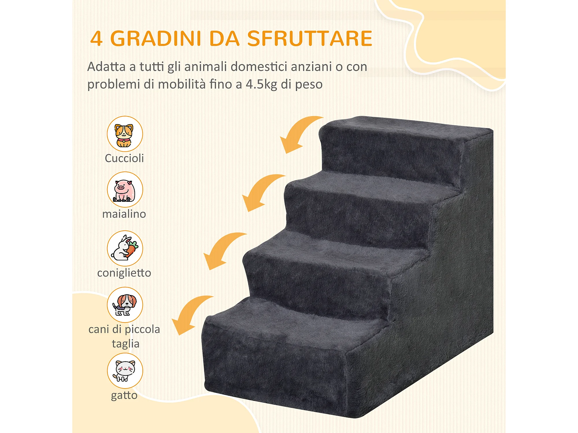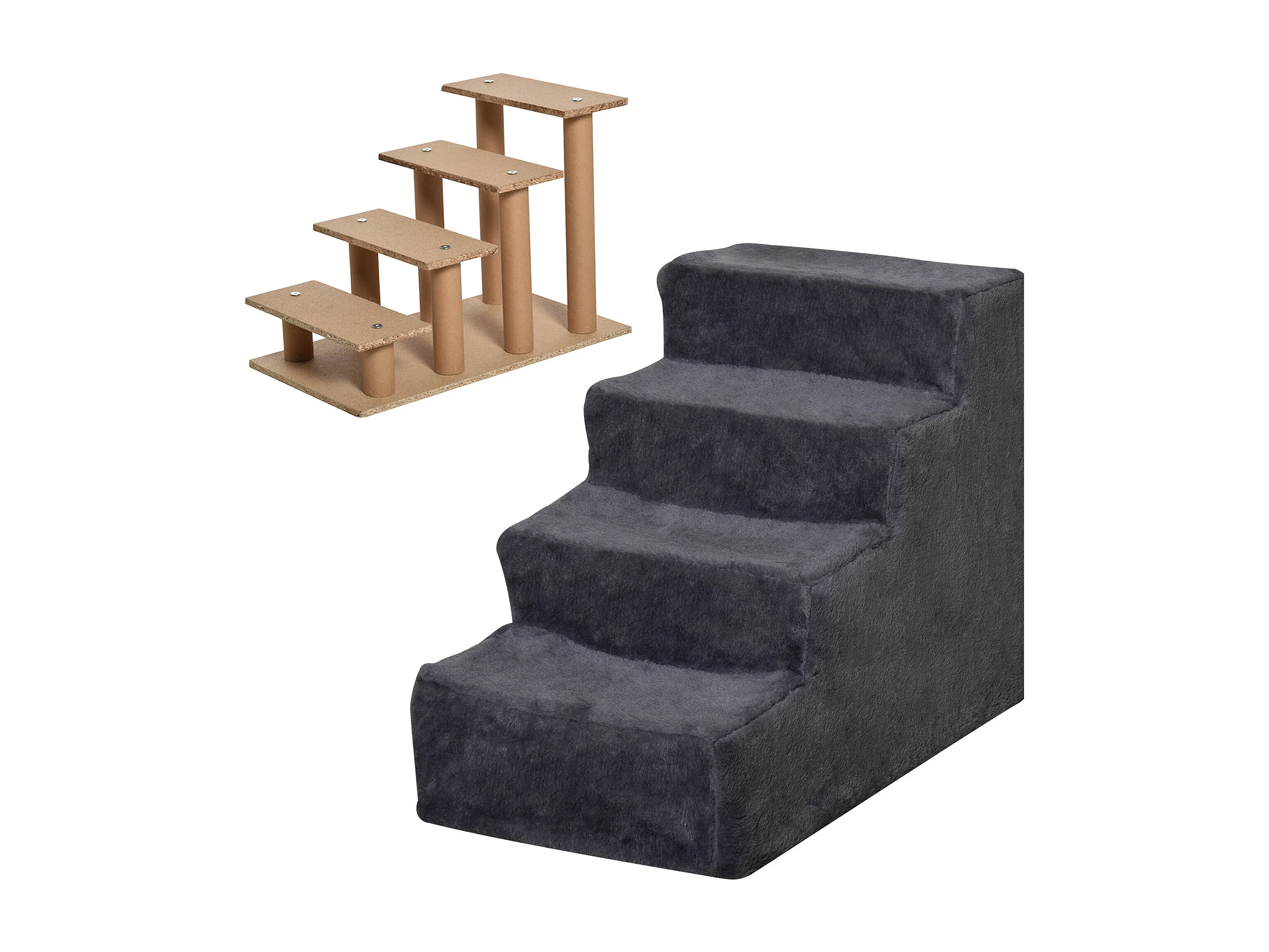 Scaletta per cani a 4 gradini in tessuto vellutato grigio scuro