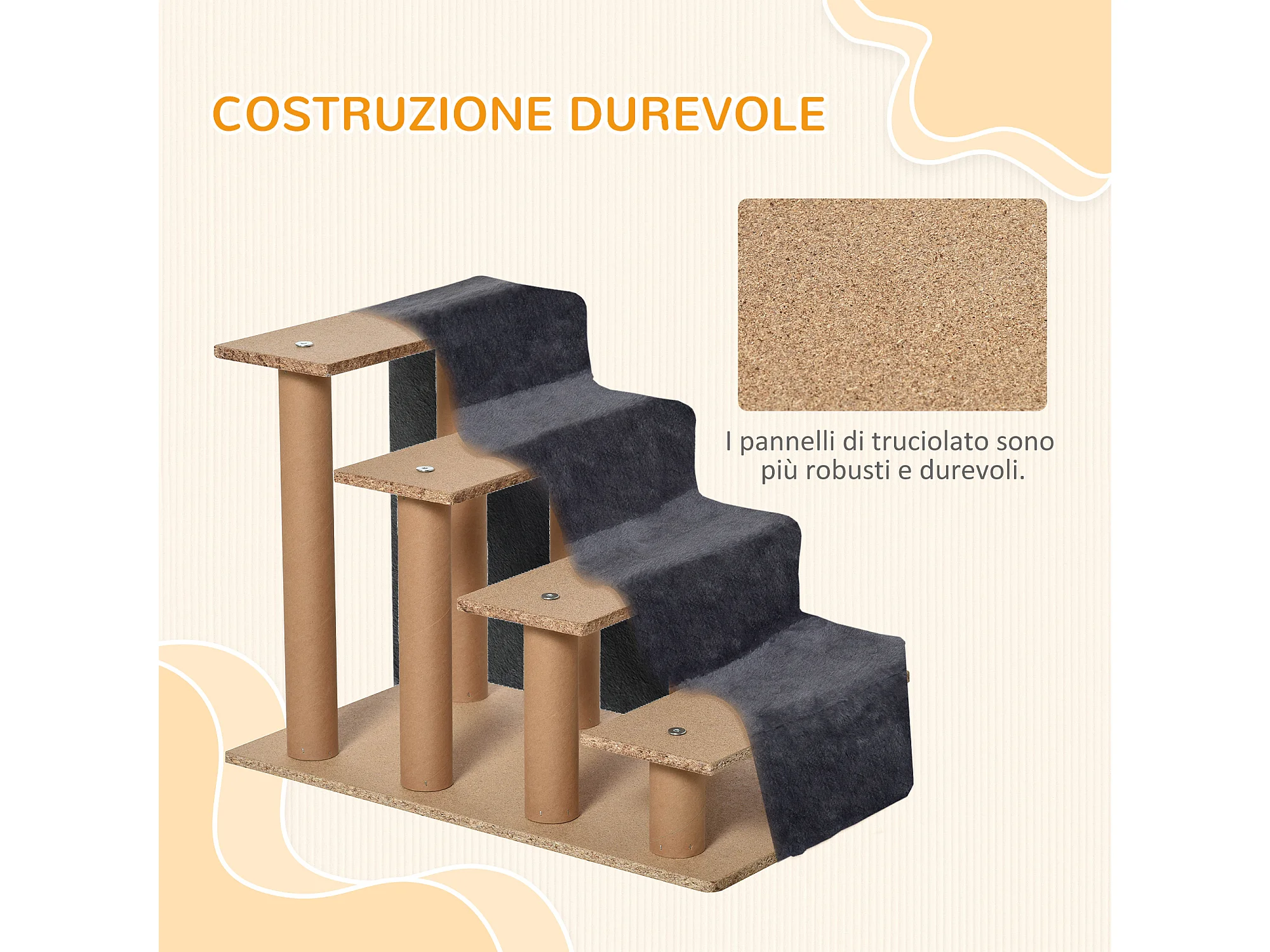 Scaletta per gatti a 4 scalini con 2 casette e tiragraffi grigio