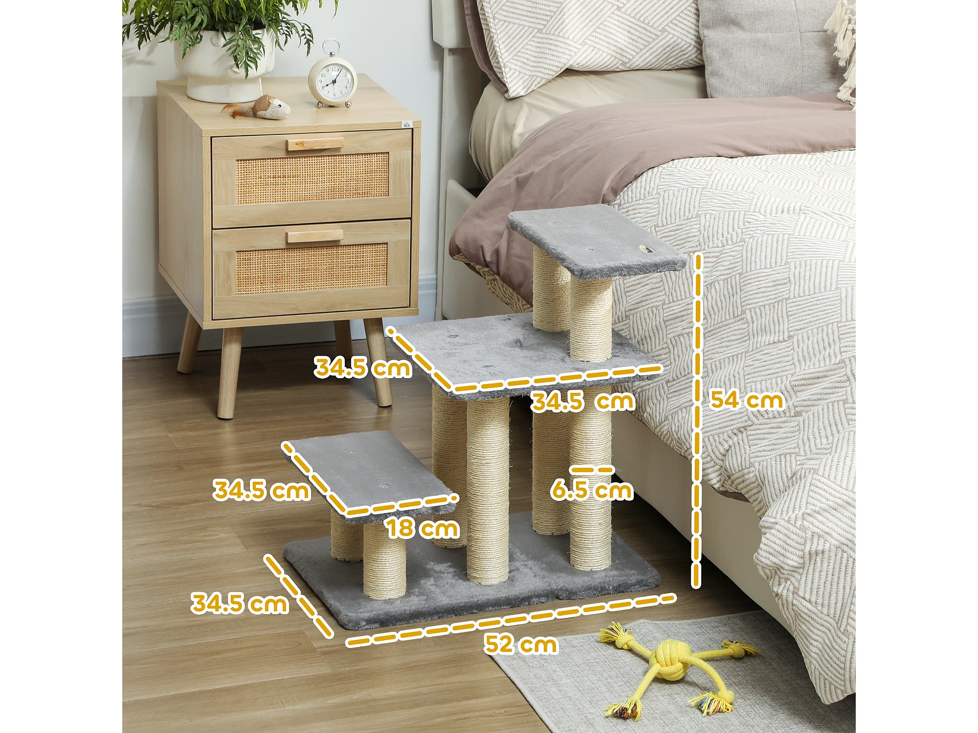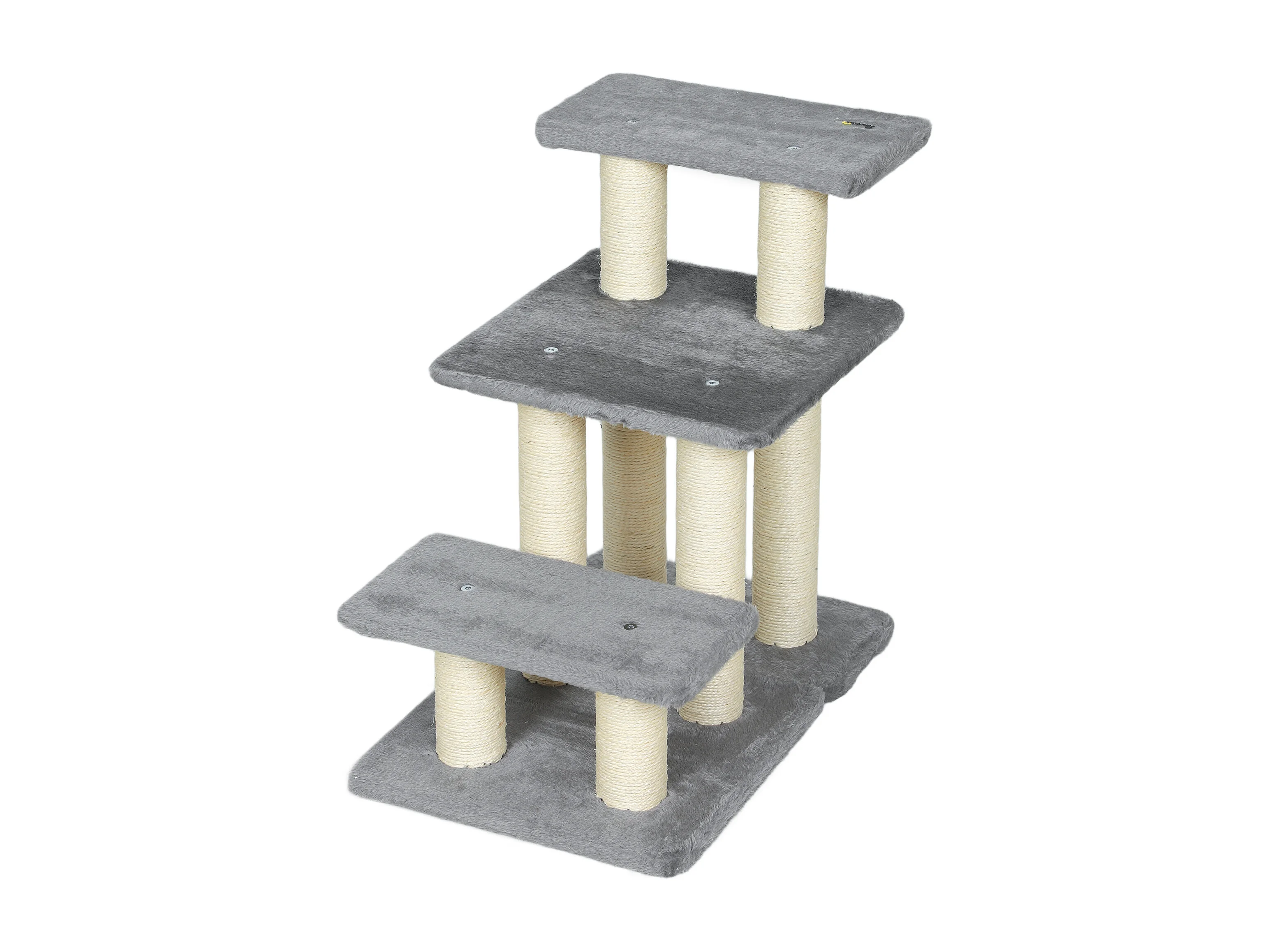 Scaletta per cani e gatti a 3 scalini in peluche e sisal grigio