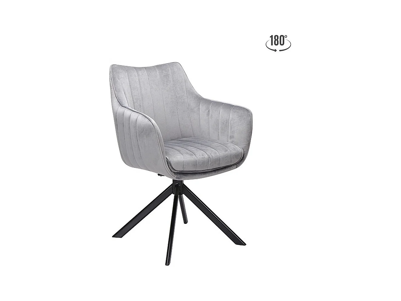 Sedia girevole in velluto grigio Zolo con gambe in metallo nero