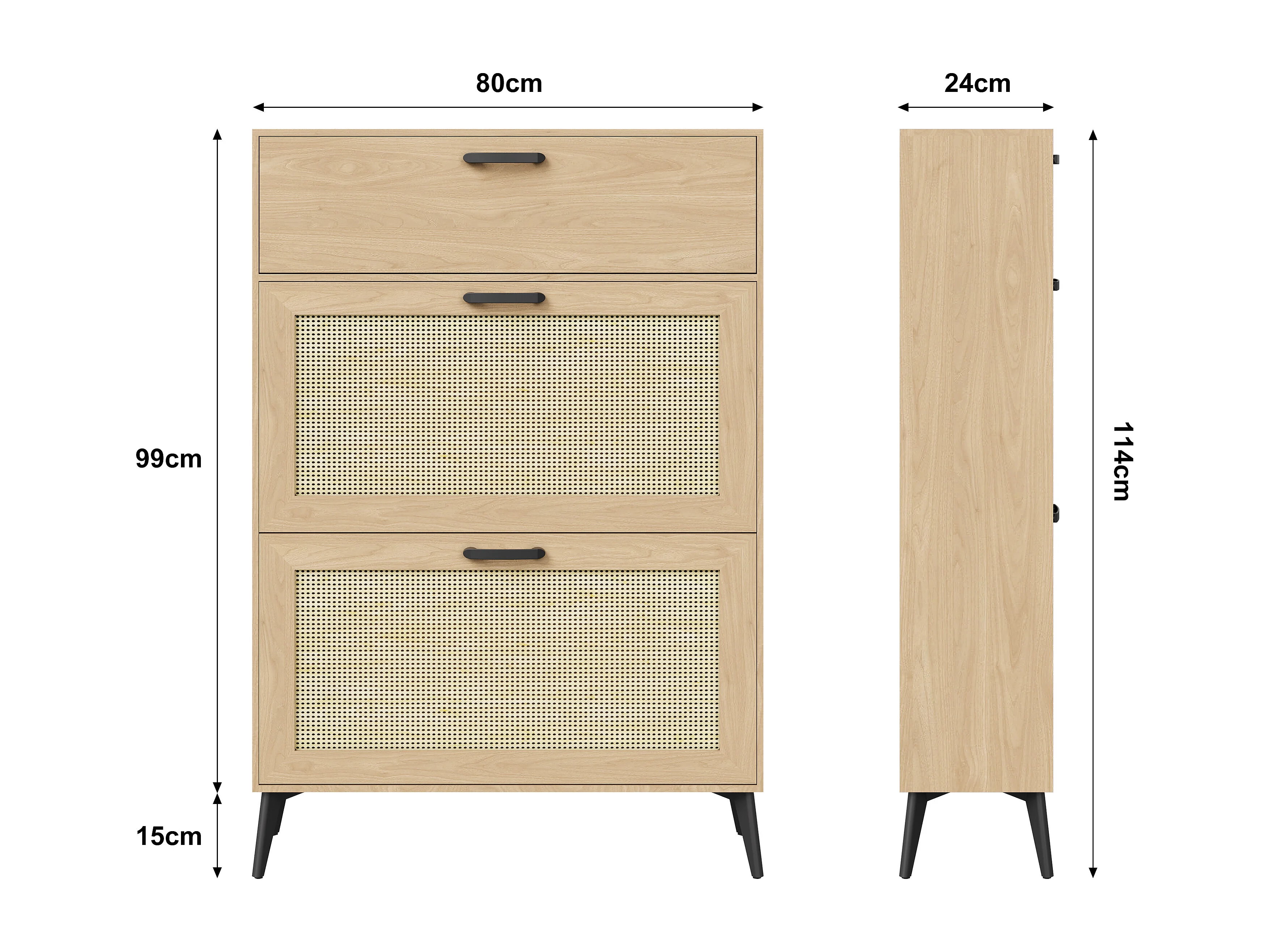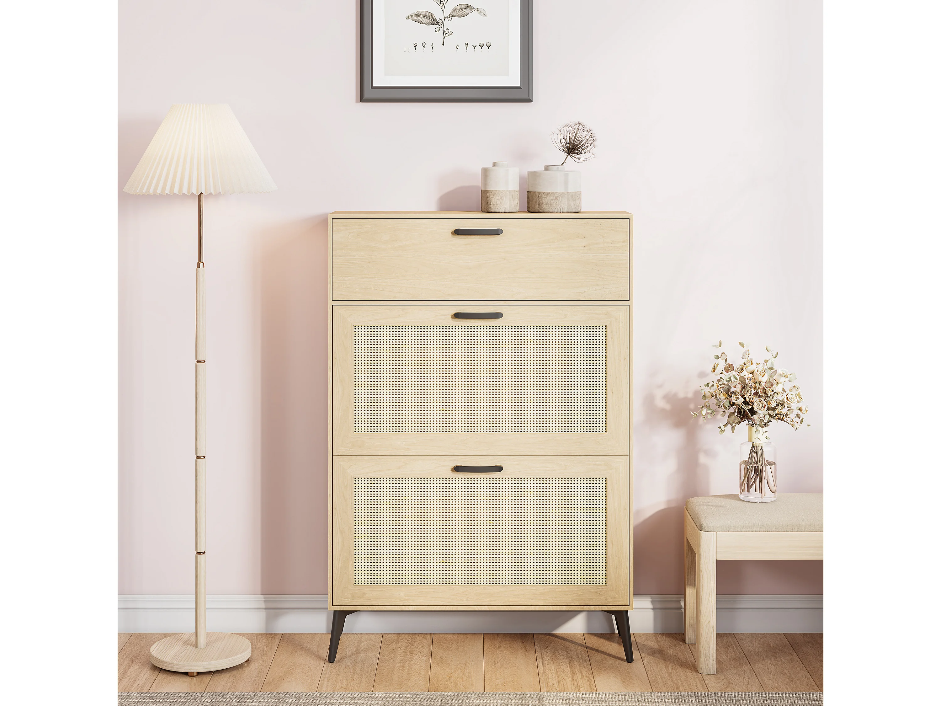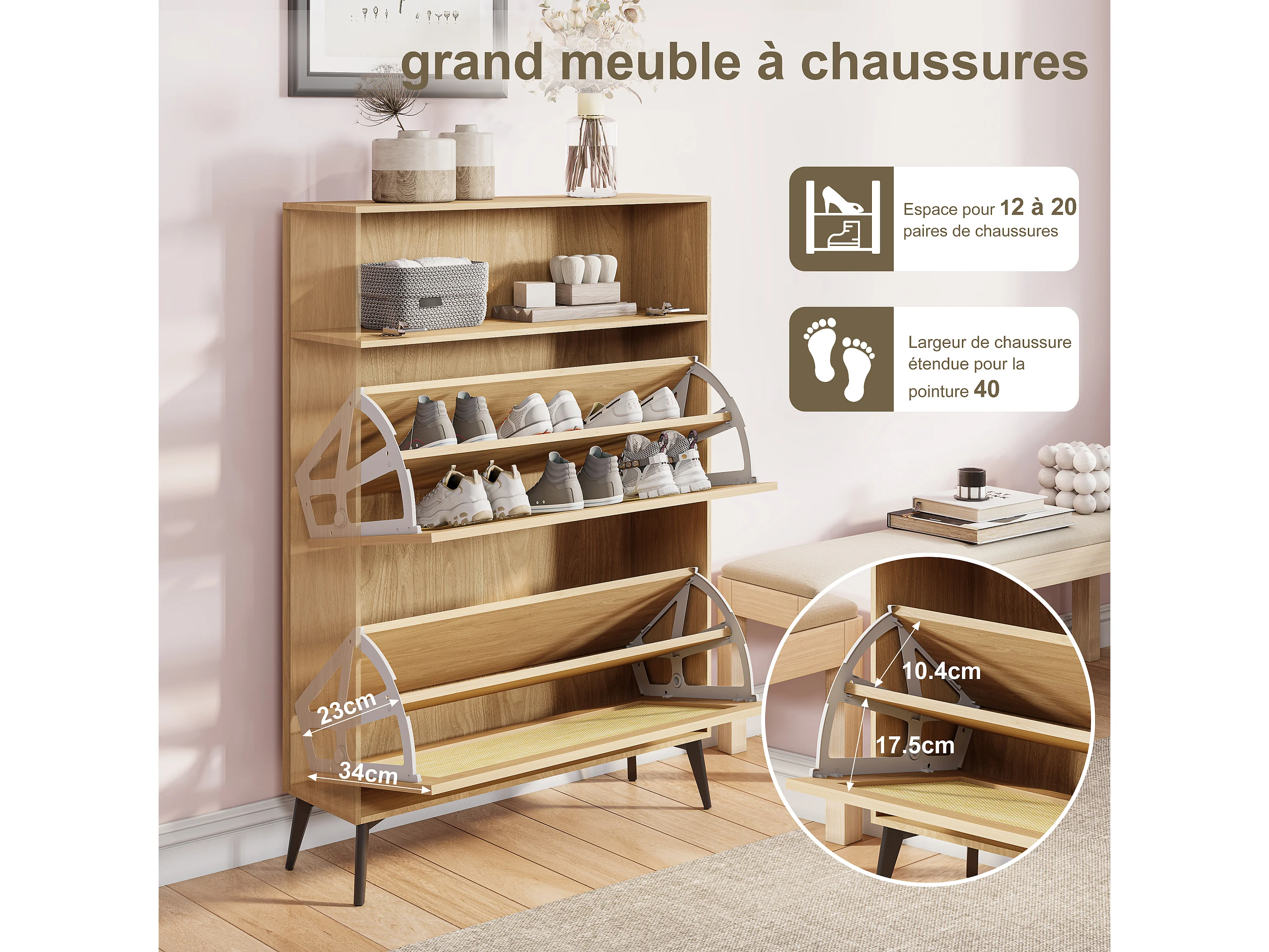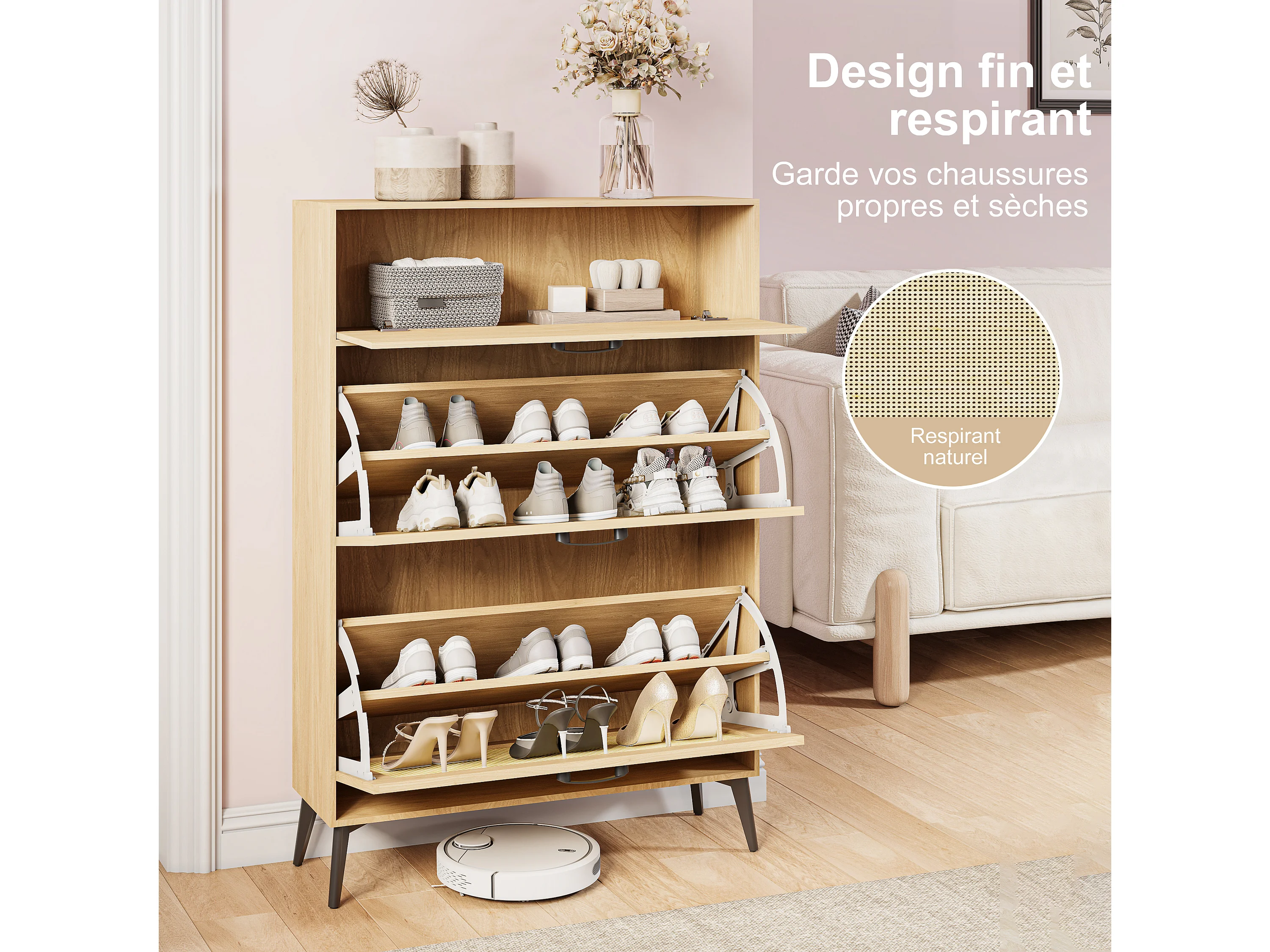 Scarpiera, 80 x 23 x 114 cm, Scarpiera in rattan, Mobiletto portaoggetti per ingresso, Legno
