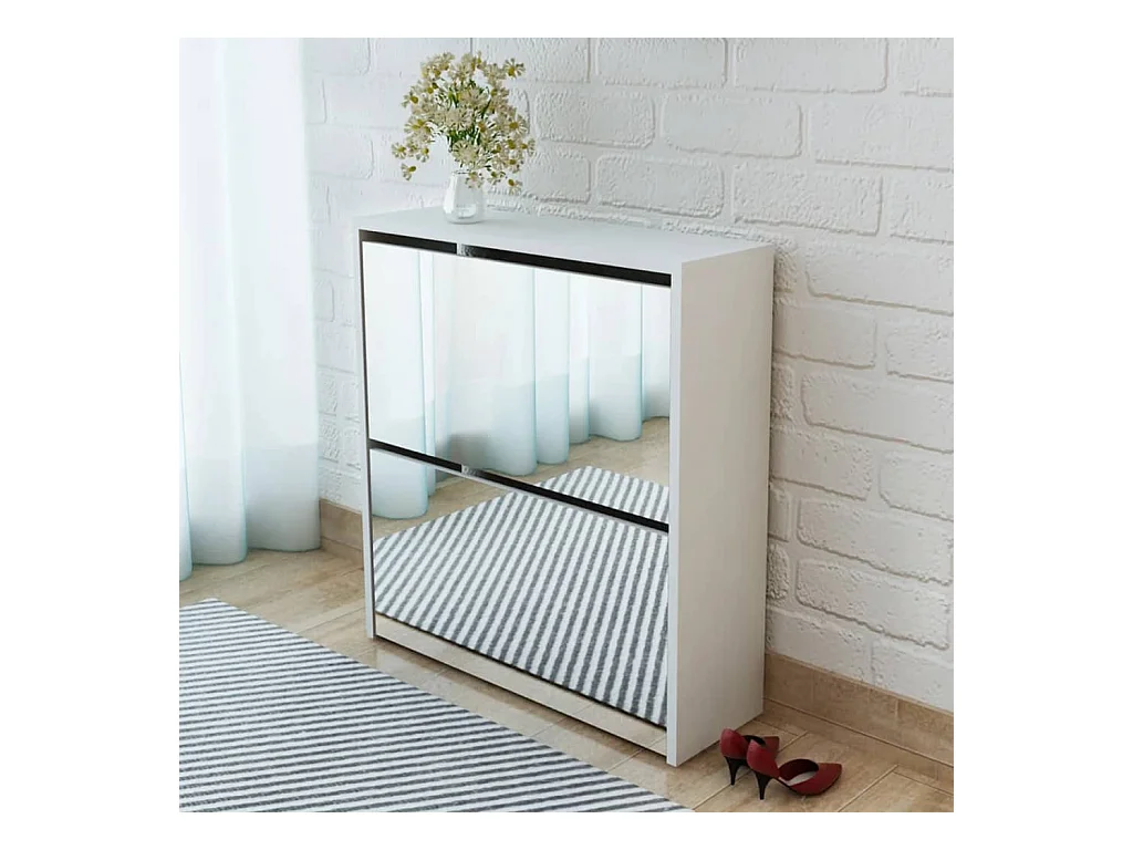 Scarpiera a specchio 2 livelli Bianco lucido 63x17x67cm