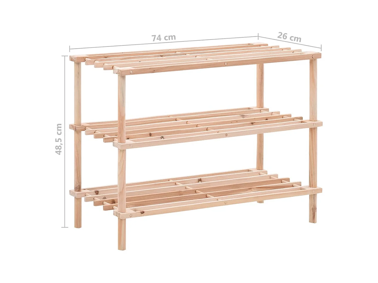 Scarpiera a 3 ripiani in legno massello di abete