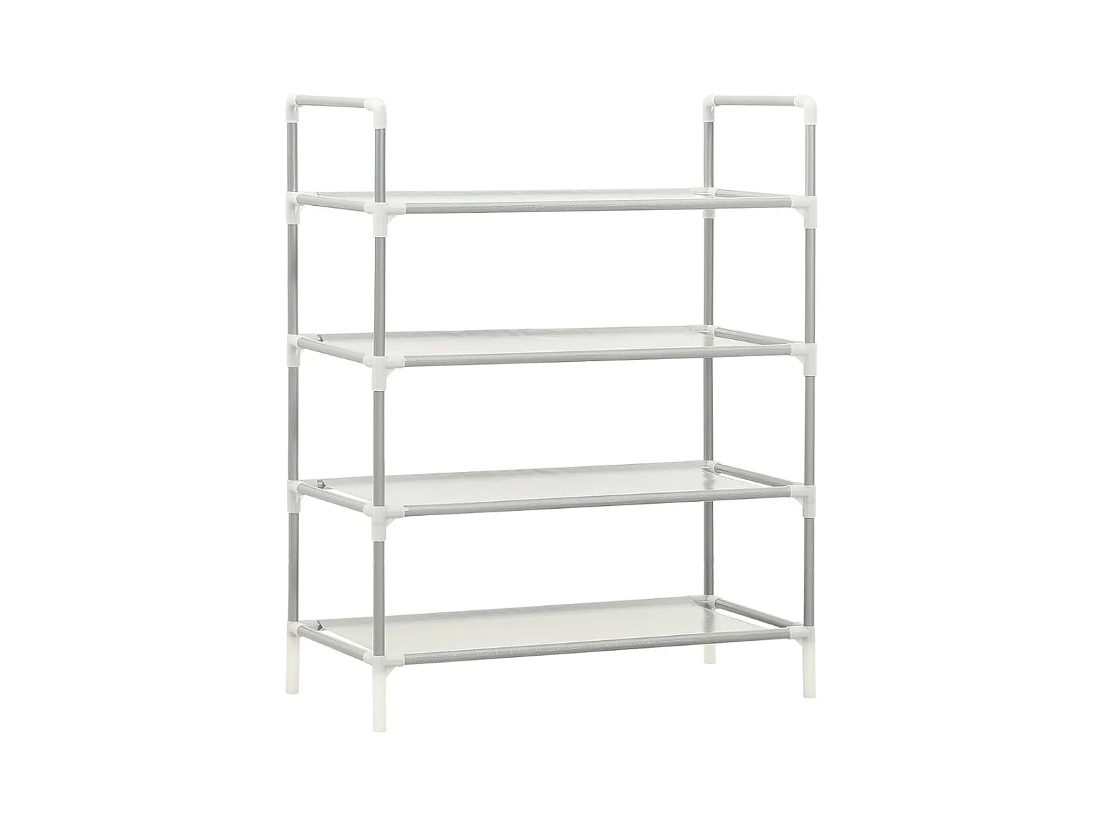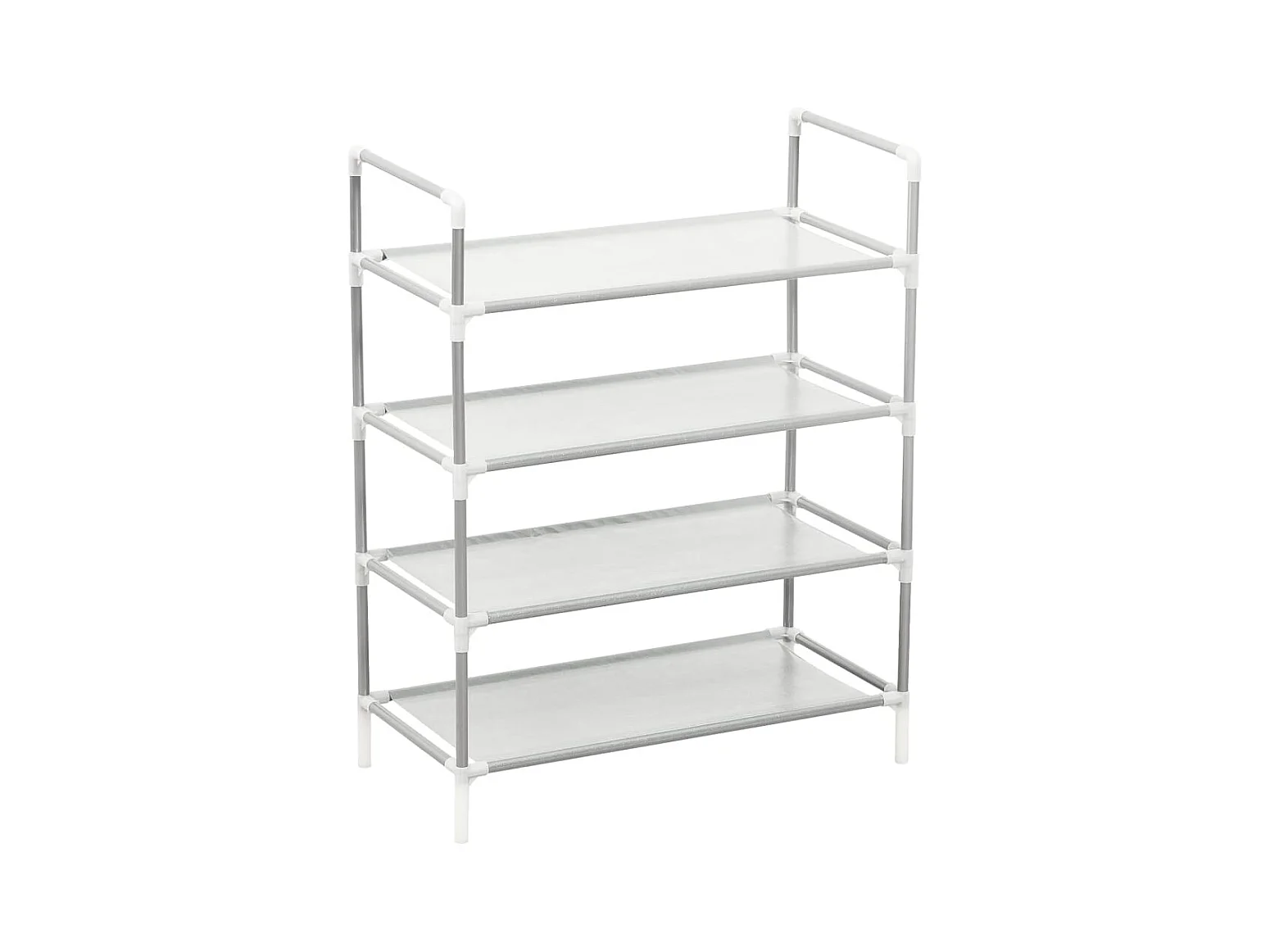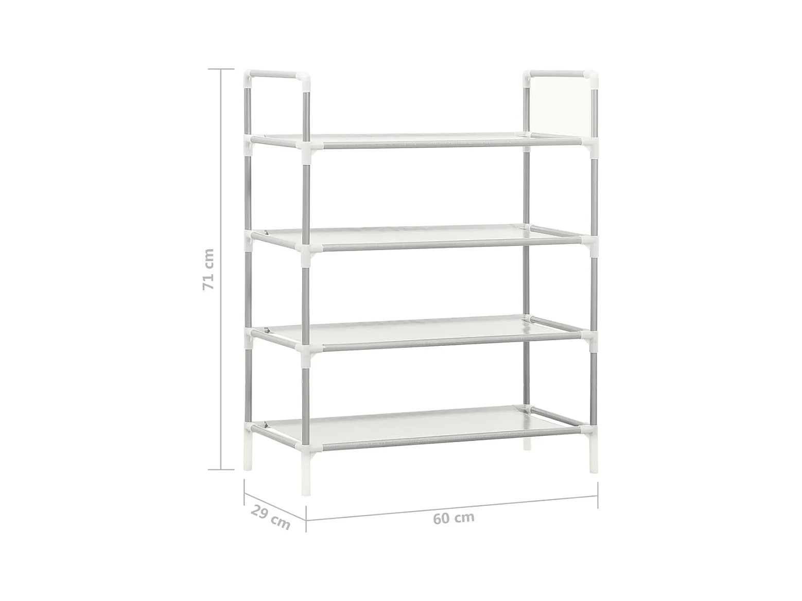 Scarpiera a 4 ripiani in metallo e tessuto non tessuto argento