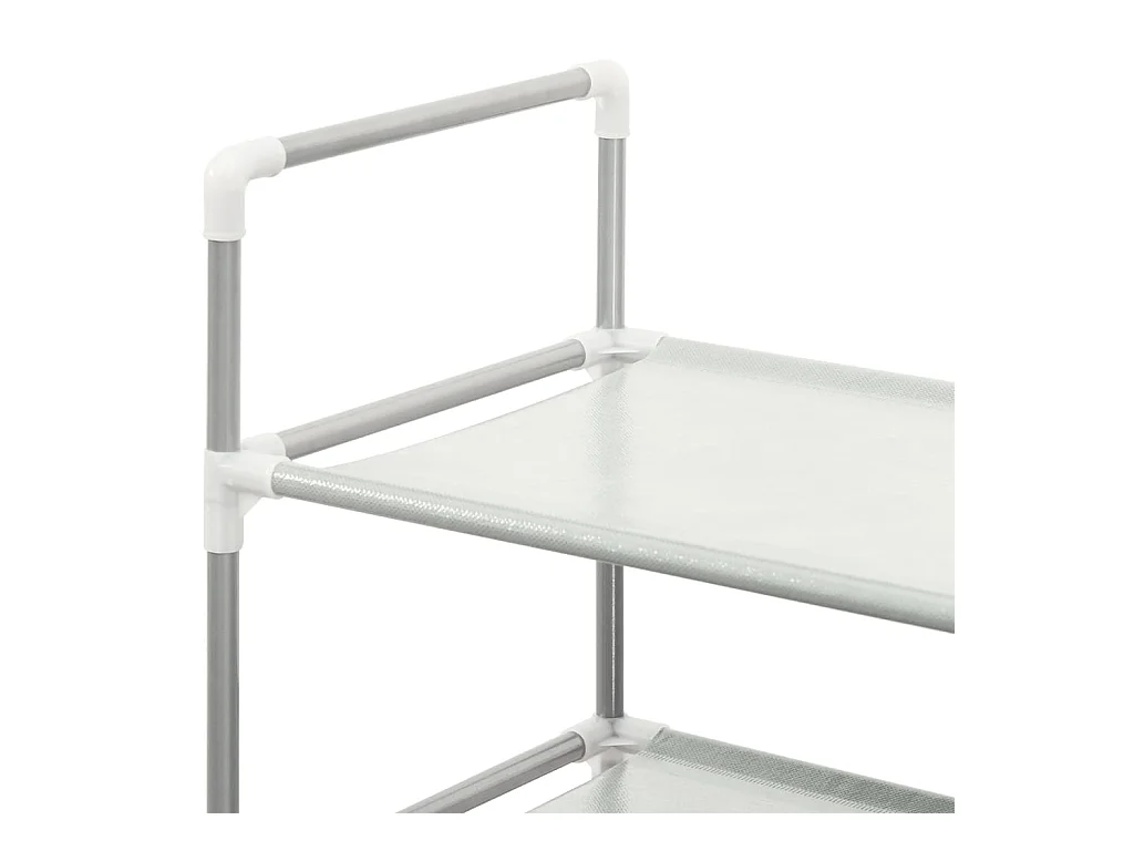 Scarpiera a 10 ripiani in metallo e tessuto non tessuto, argento