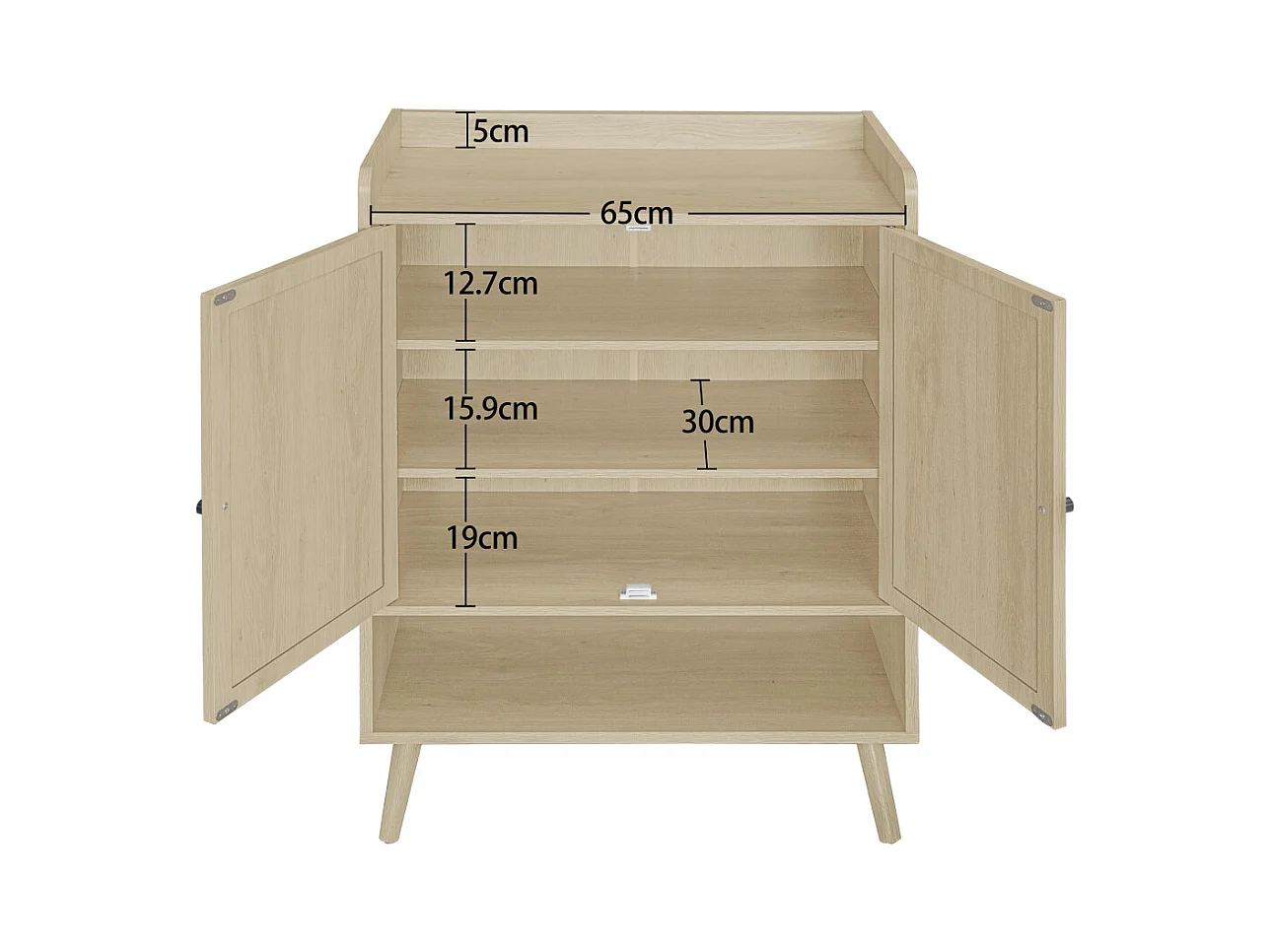Scarpiera a due ante, 68 x 35 x 90 cm, effetto legno naturale, effetto rattan intrecciato, con contenitore, ideale per ingressi e corridoi