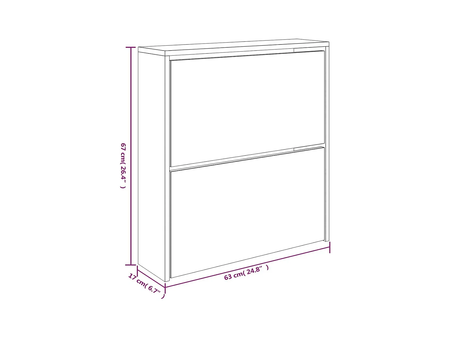 Scarpiera a specchio a 2 ripiani, bianco lucido, 63x17x67cm