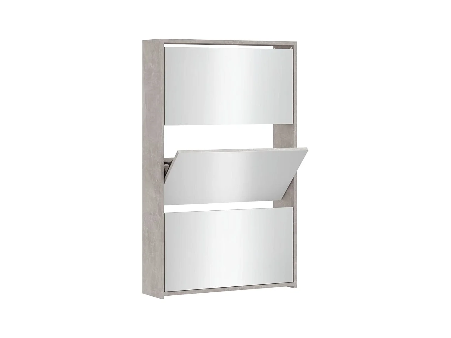 Scarpiera a specchio 3 livelli Grigio cemento 63x17x102,5 cm
