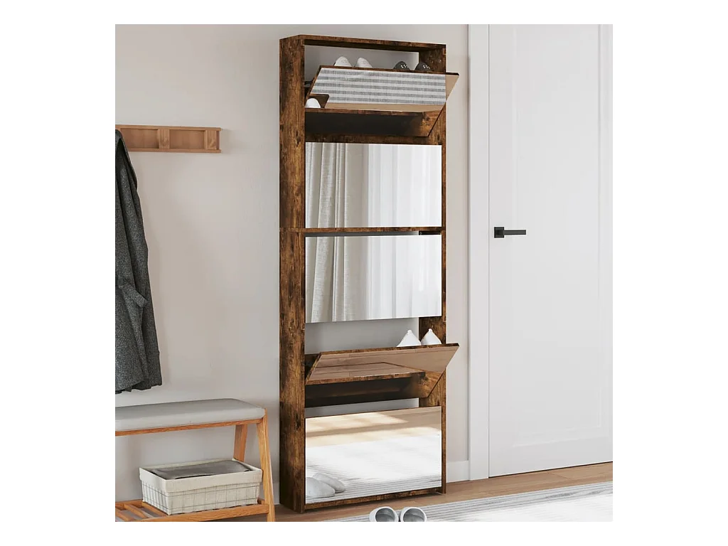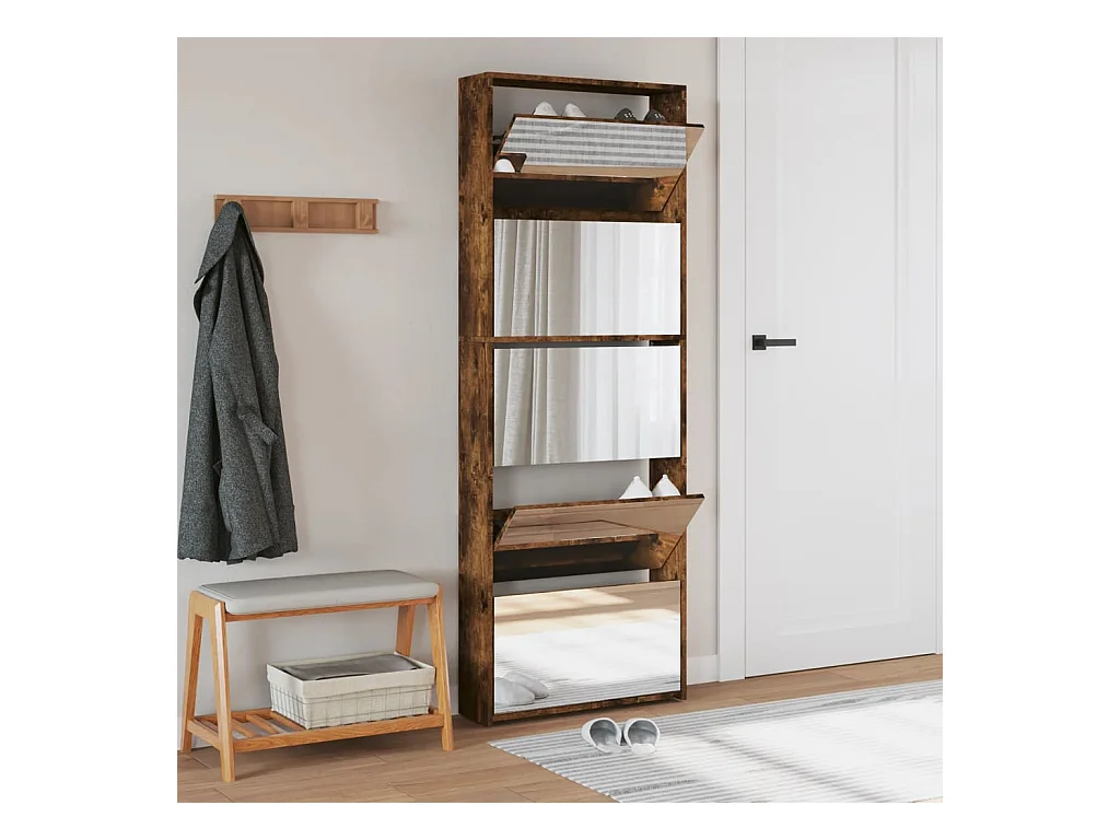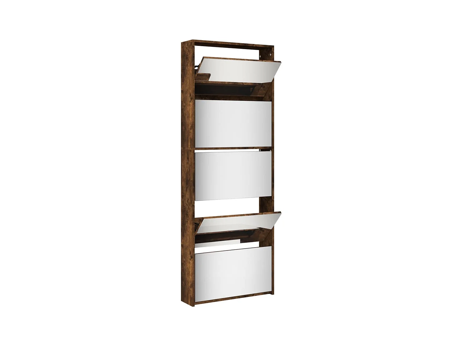Scarpiera a specchio con 4 livelli rovere affumicato 63x17x134 cm