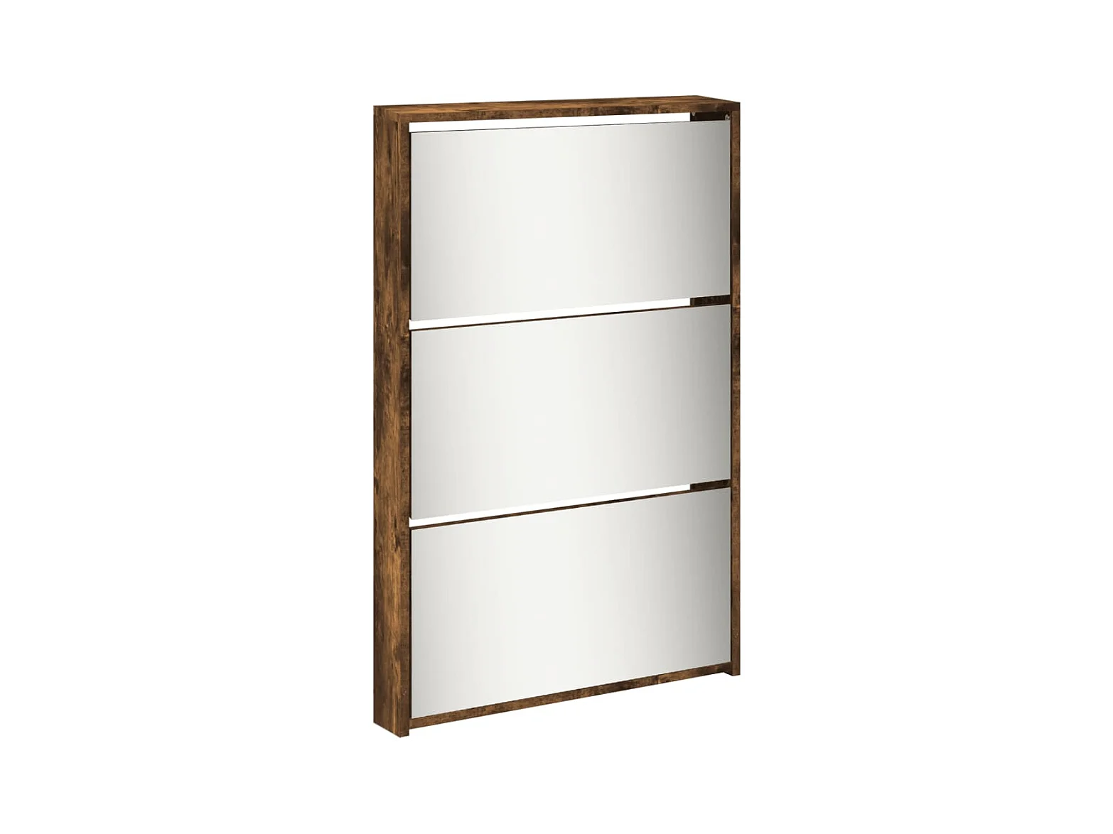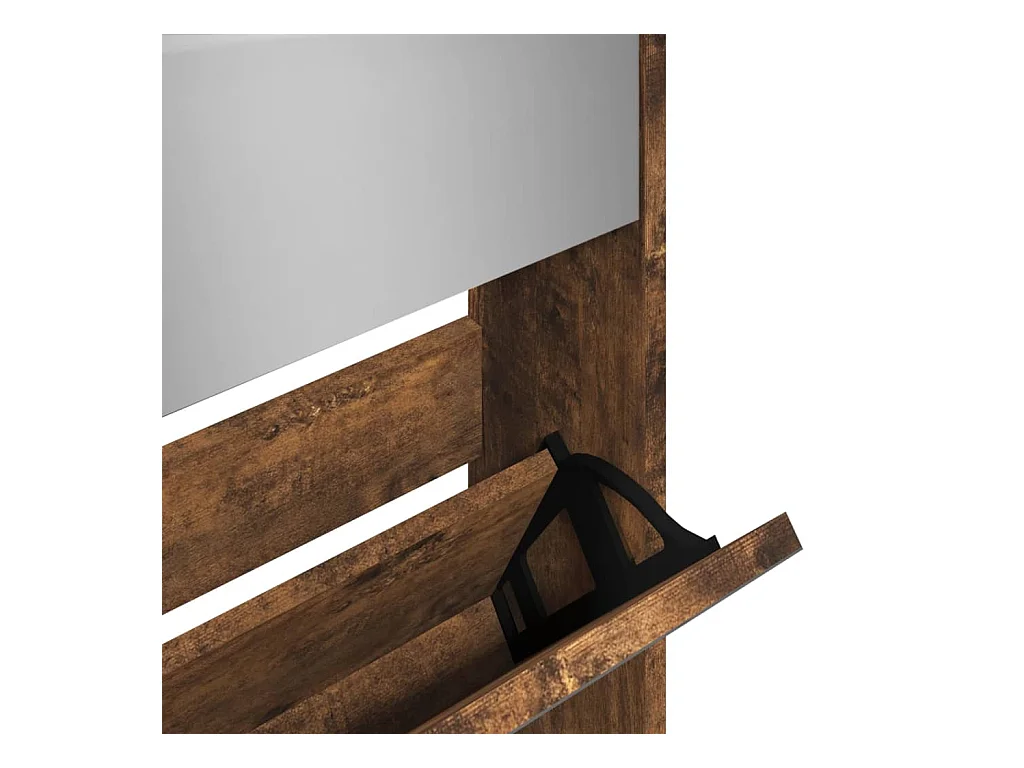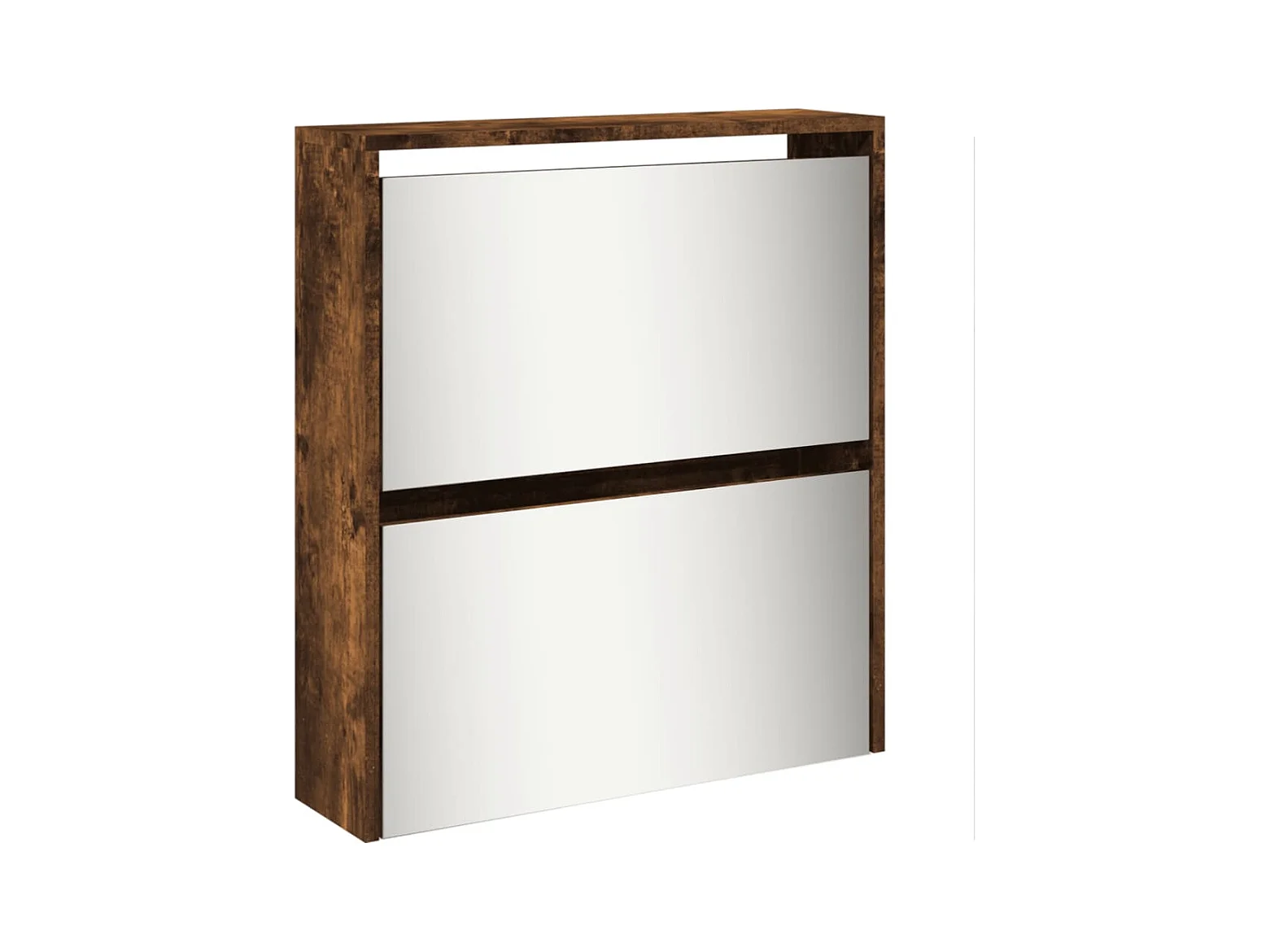 Scarpiera a 2 ripiani con specchio Rovere affumicato 63x17x67 cm
