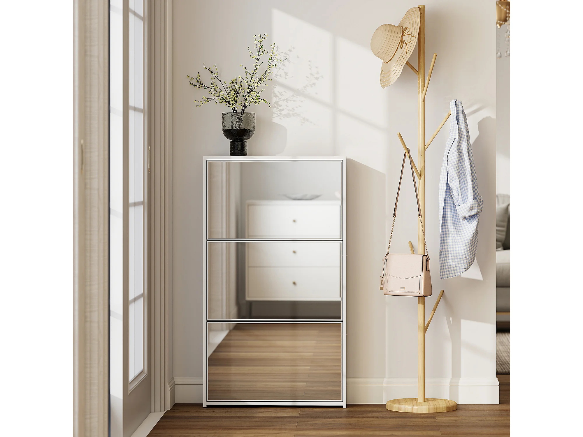 Scarpiera a specchio con 3 cassetti a ribalta 65x17x114.5 cm bianco
