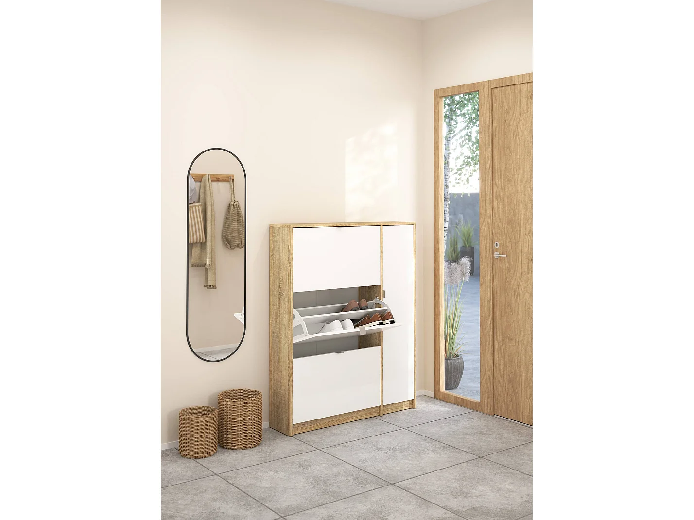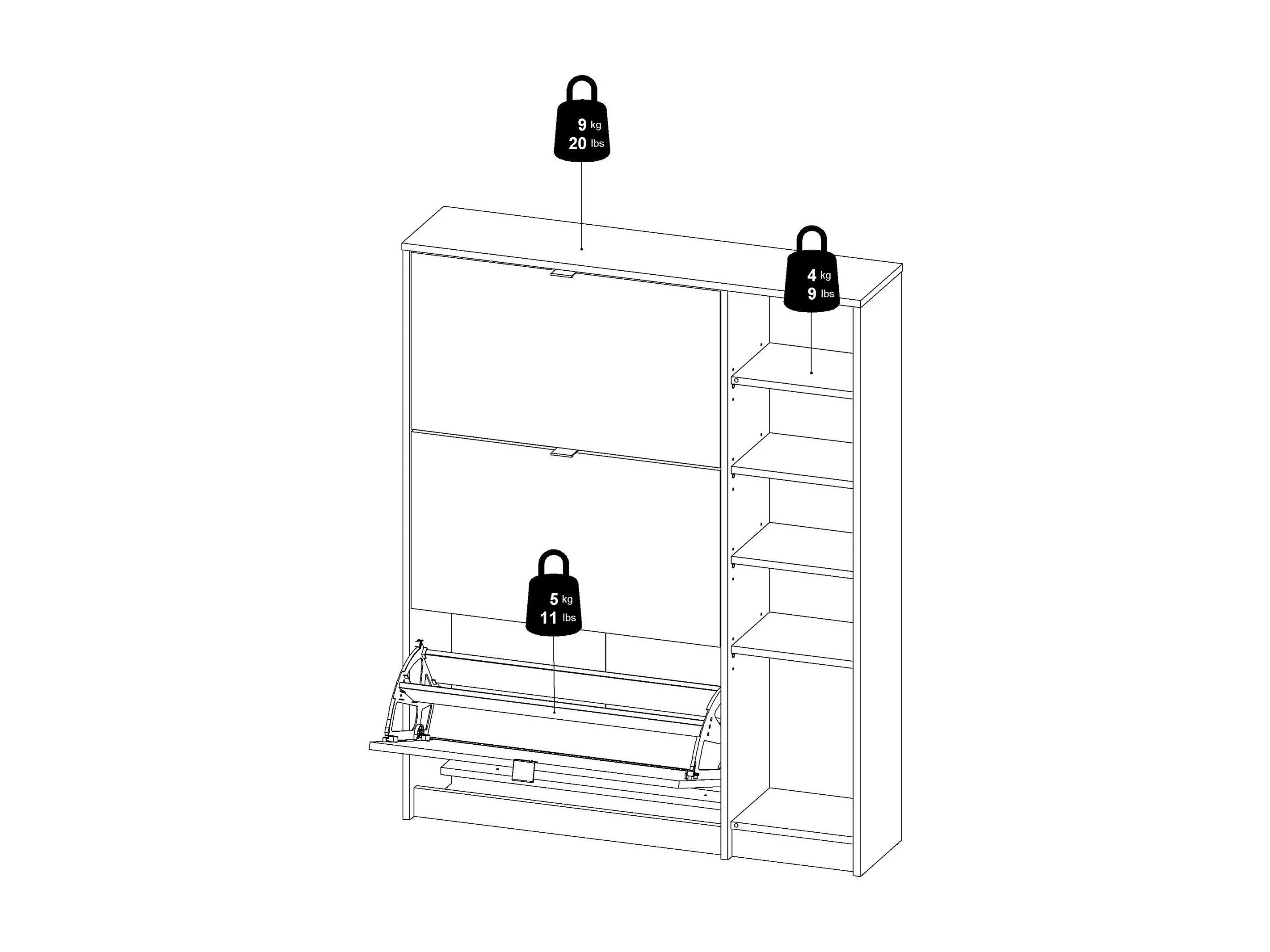 Scarpiera Abastract, 4 Ripiani, 24.05x98.8x123.6h cm Marrone Quercia, Mobile Portascarpe