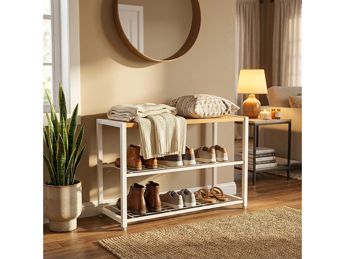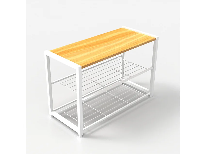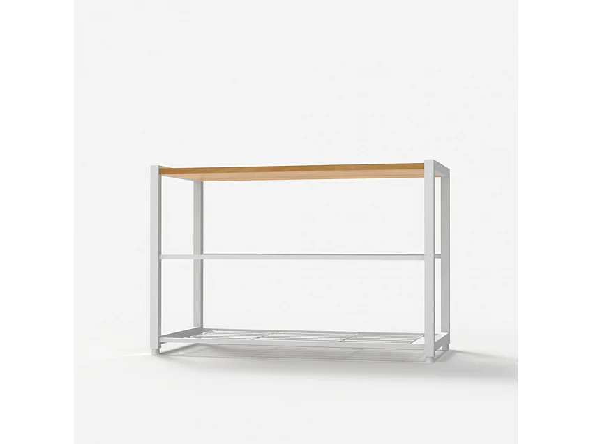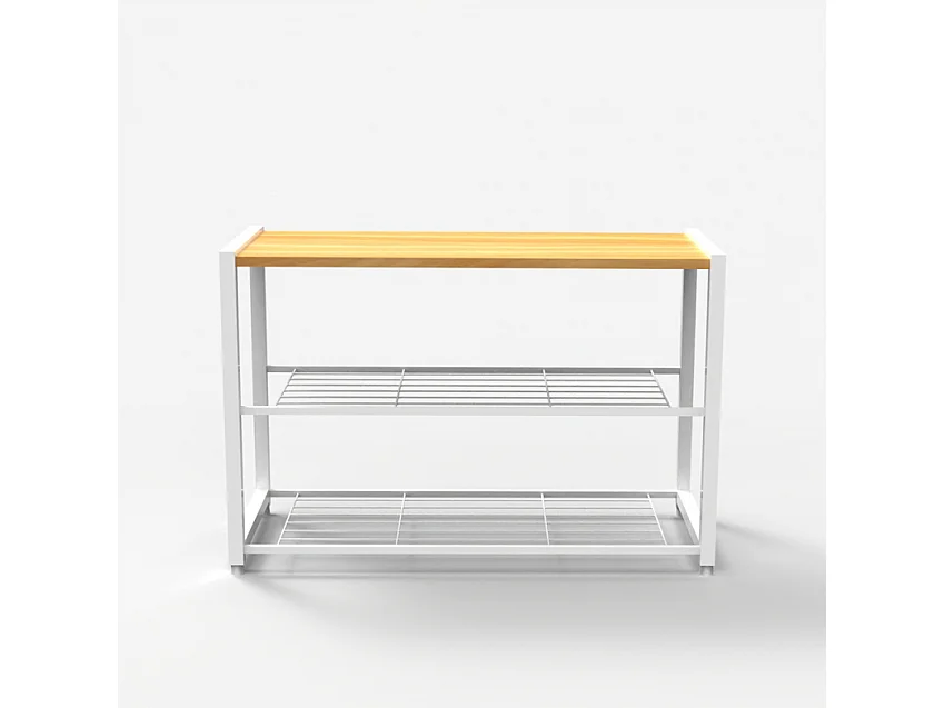 Scarpiera aperta ingresso 2 ripiani 1 mensola 8 paia di scarpe legno metallo Amnes - Bianco