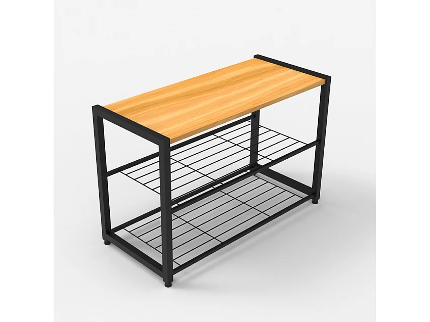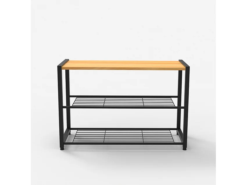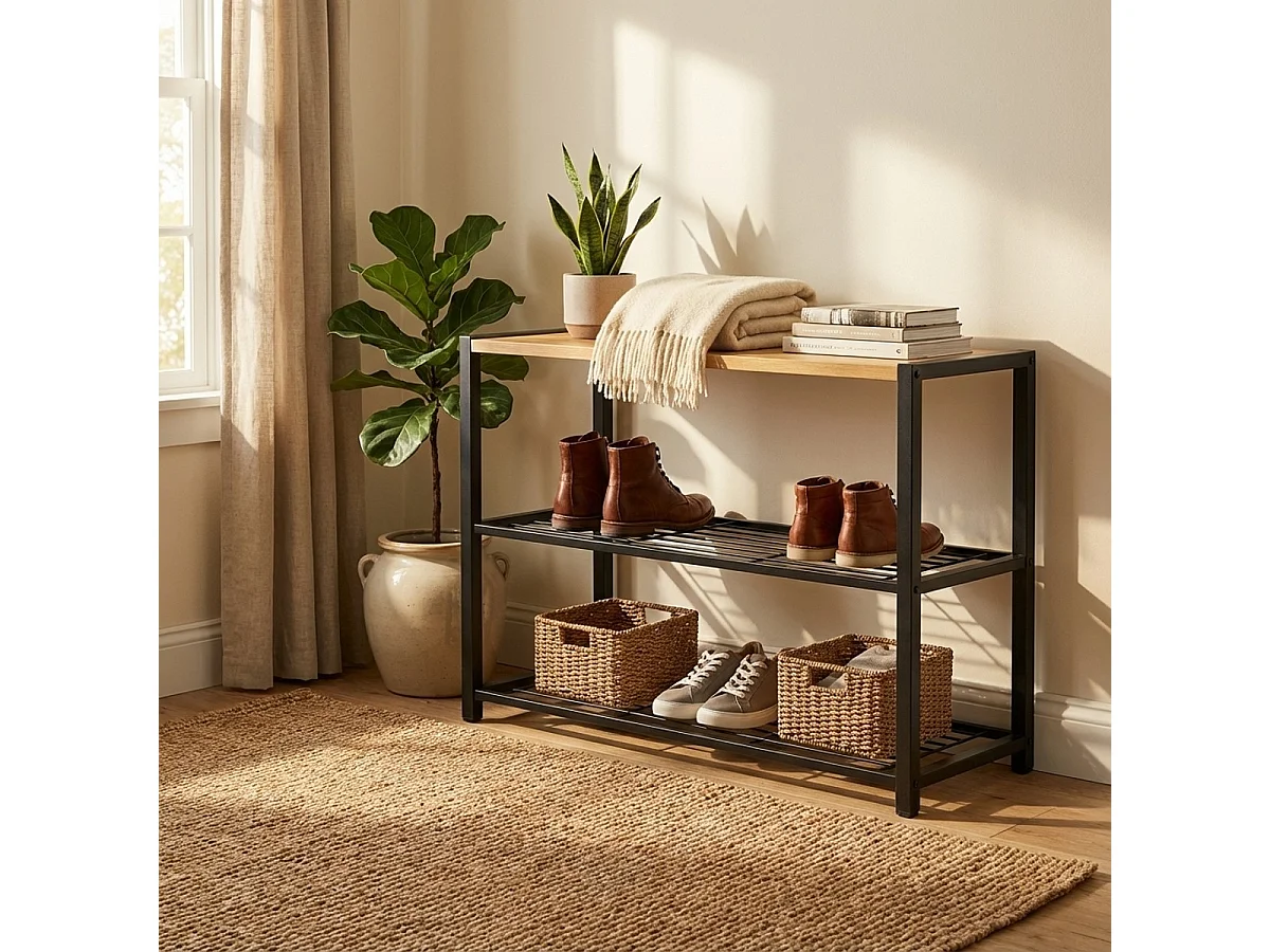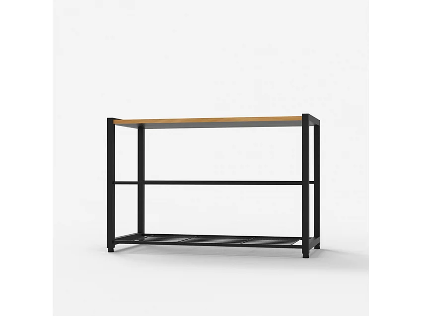 Scarpiera aperta ingresso 2 ripiani 1 mensola 8 paia di scarpe legno metallo Amnes - Nero