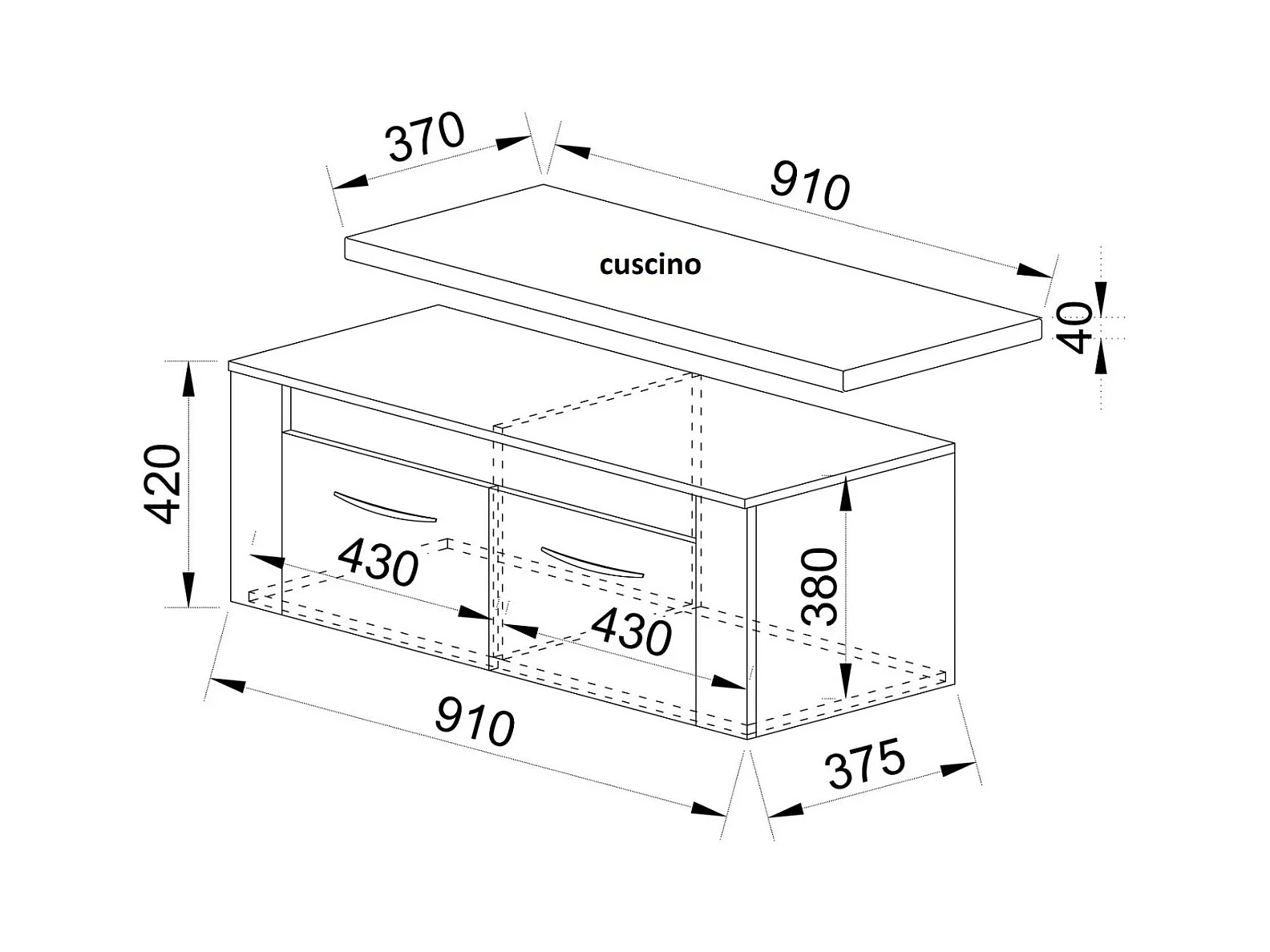 Scarpiera salvaspazio 85x45x35 con seduta rovere chiaro SCAT5
