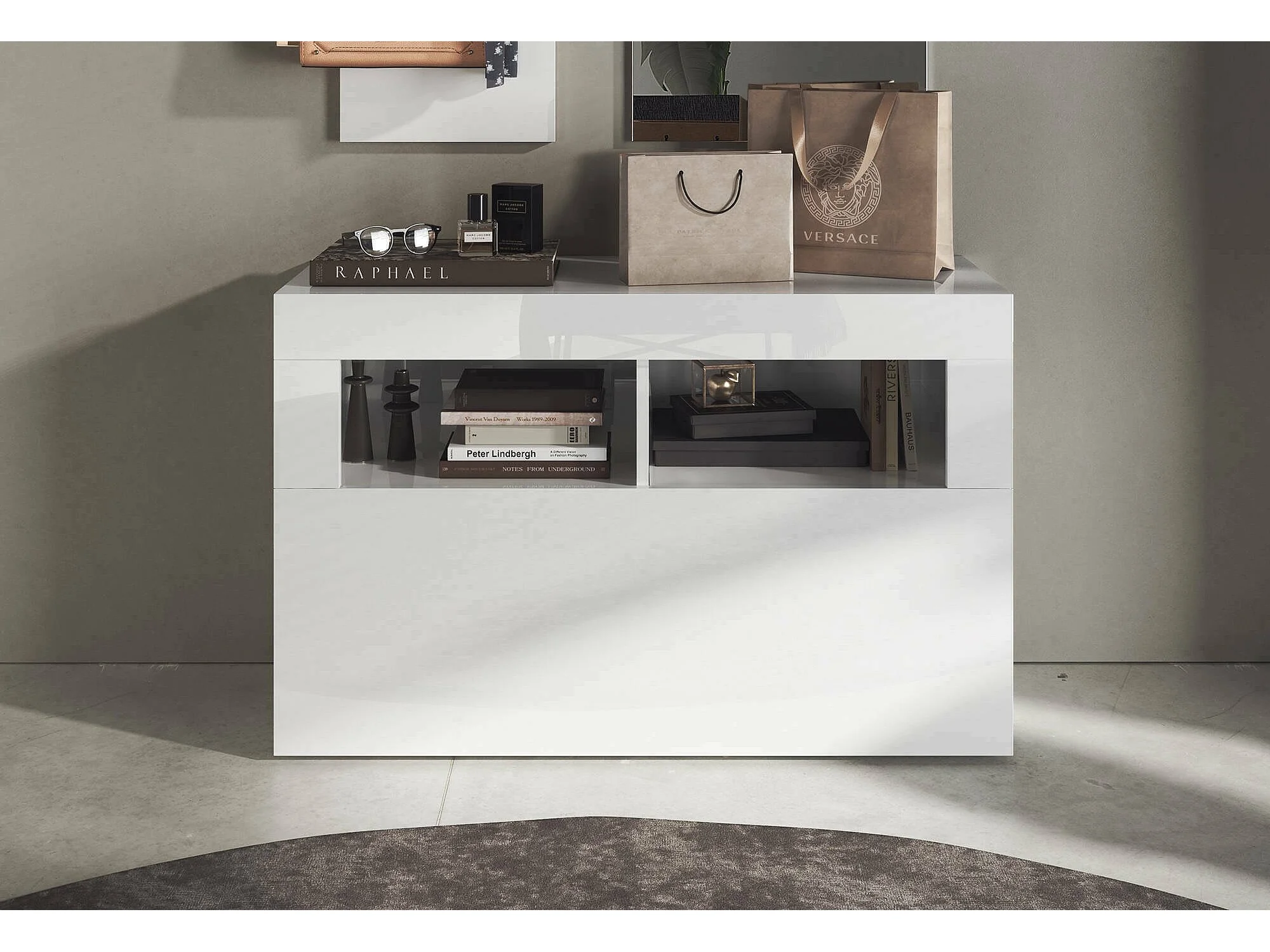 Scarpiera Bernardin, un Ripiano Made in Italy, 35x91x57h cm Bianco Lucido, Mobile Portascarpe