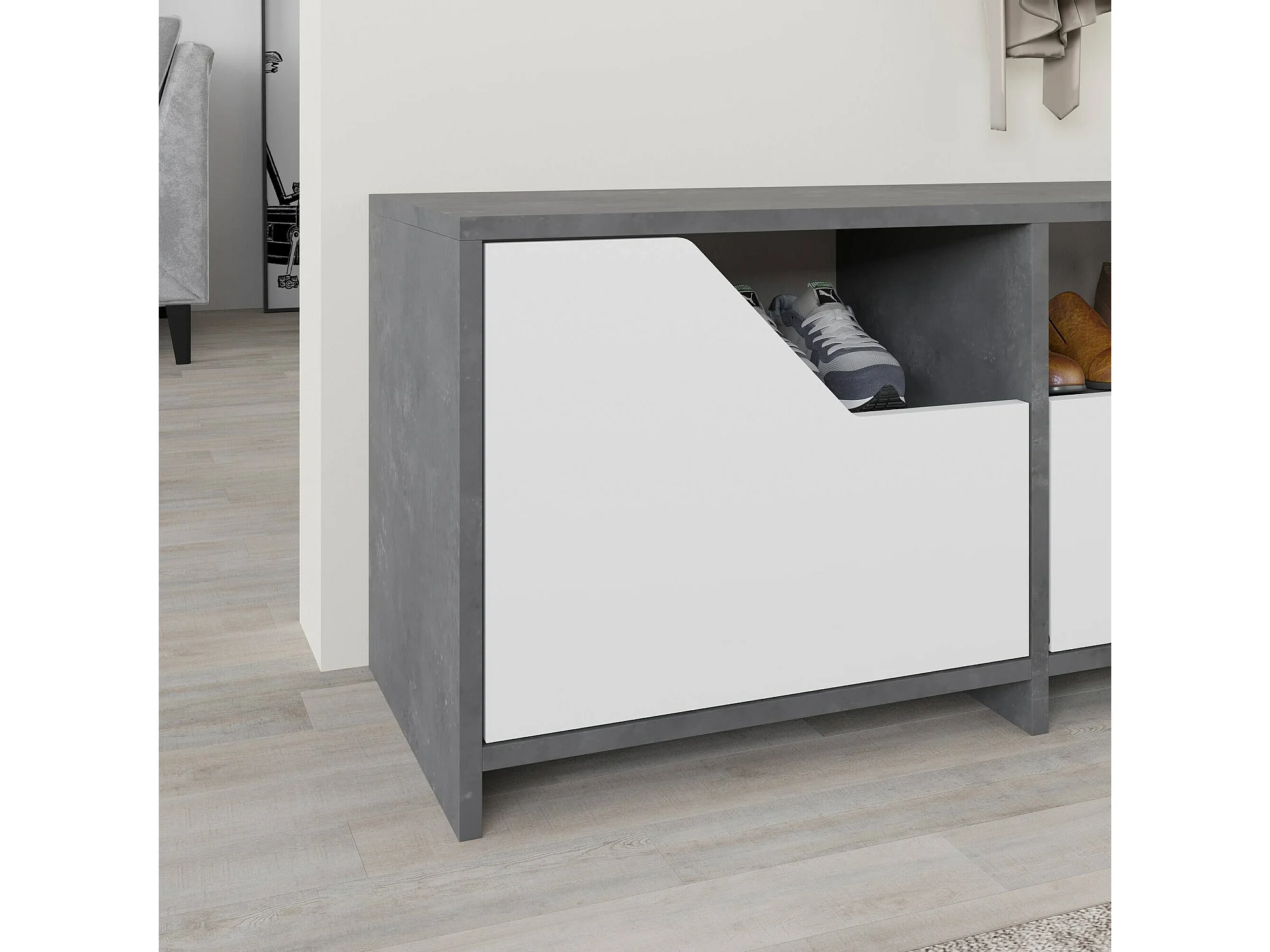 Mobile scarpiera salvaspazio moderno a 2 ante grigio bianco