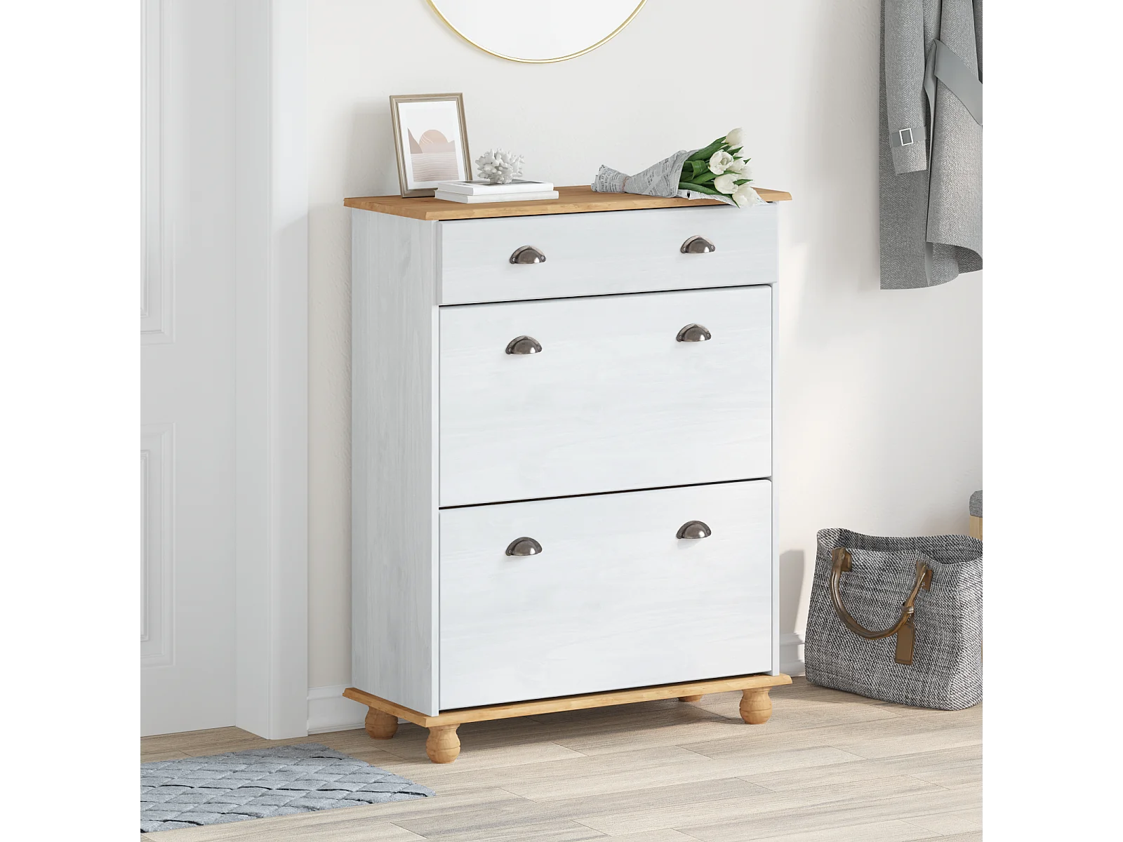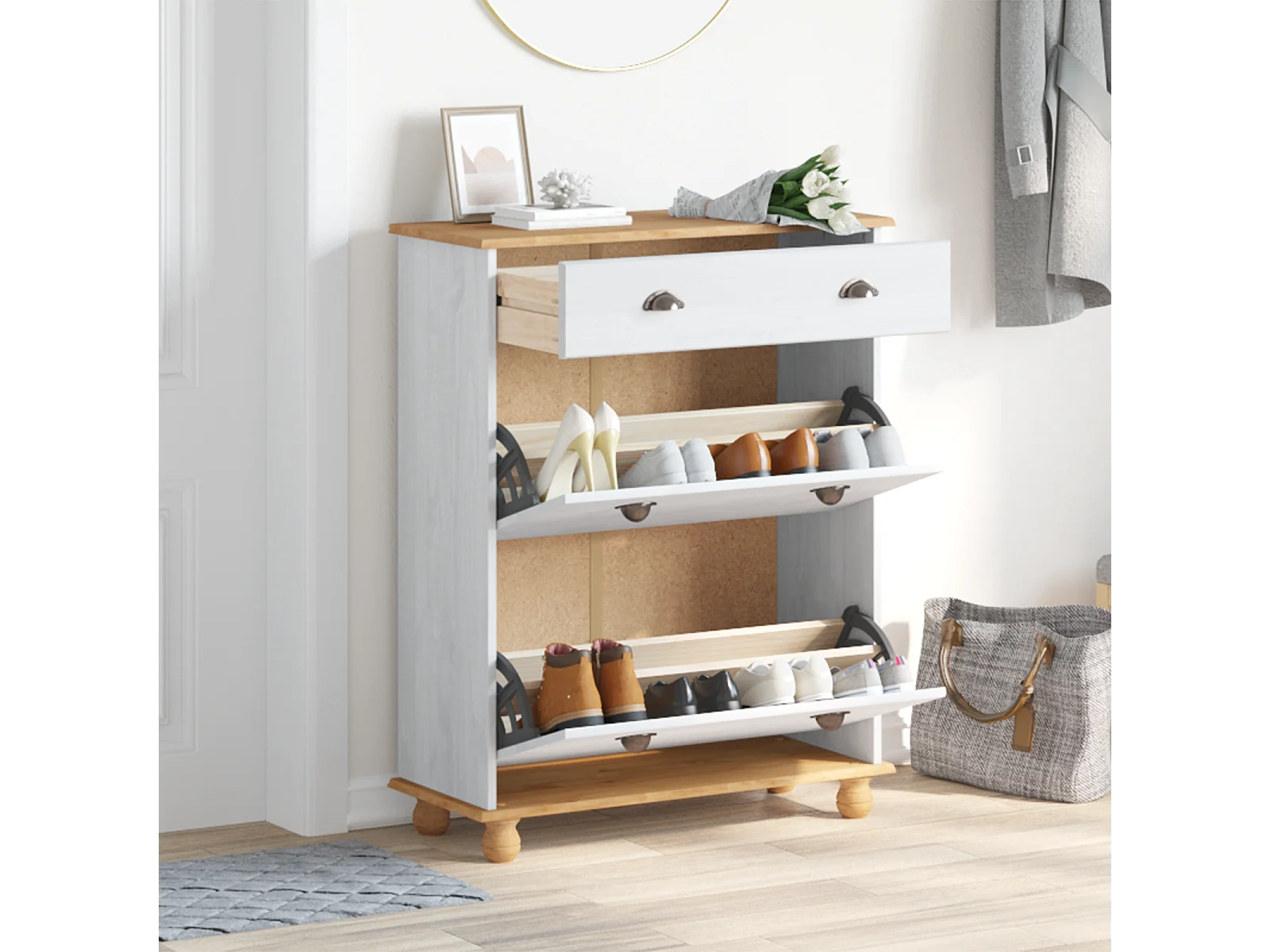 Scarpiera Bianca 85x35x108 cm Legno Massello di Pino
