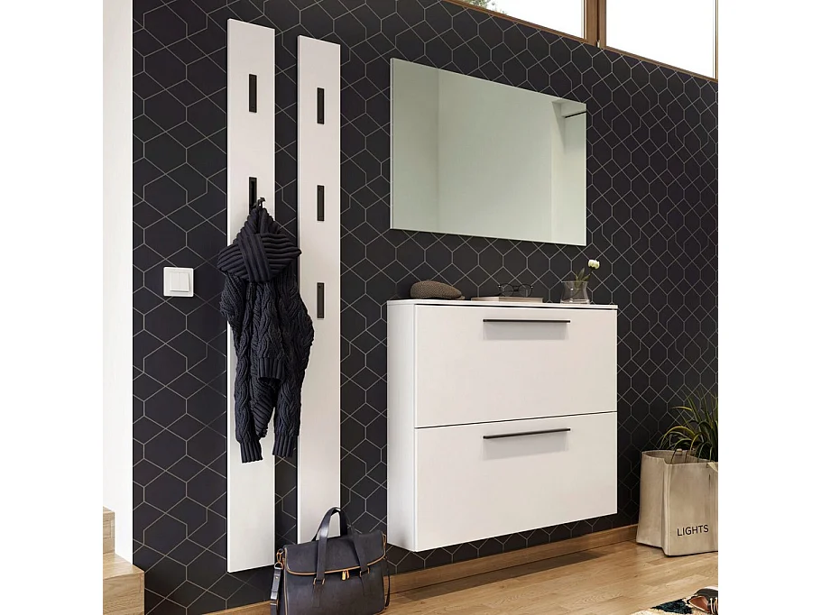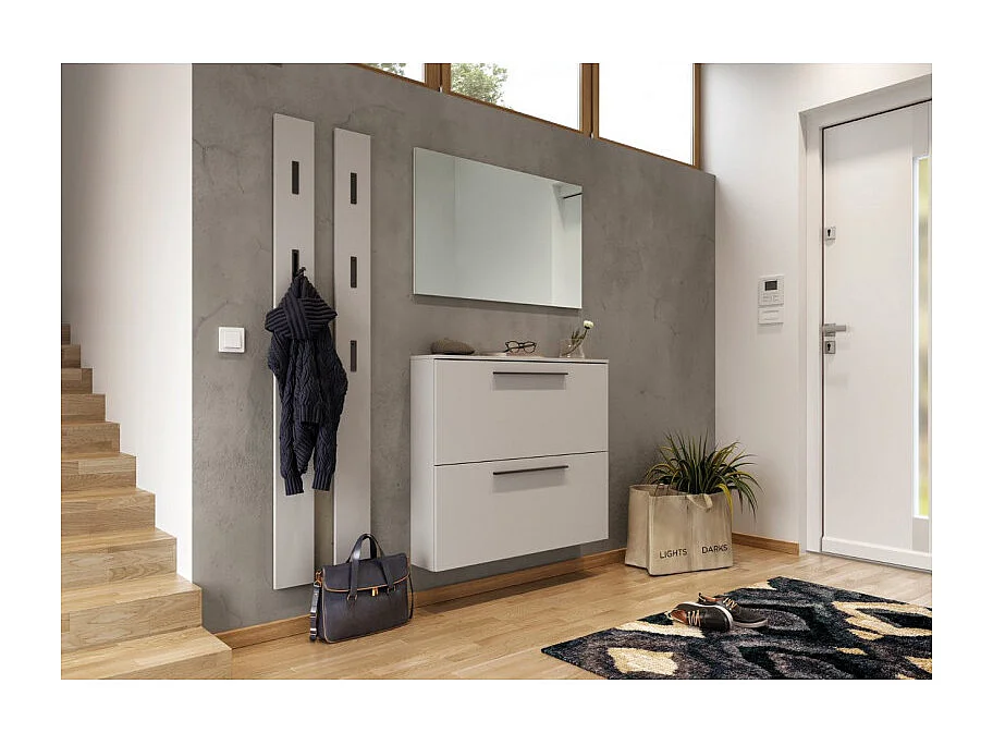 Scarpiera Eugene, Armadio portascarpe alta a 1 anta, Mobile portascarpe moderno, Armadio da ingresso con specchio, 50x22h180 cm, Bianco