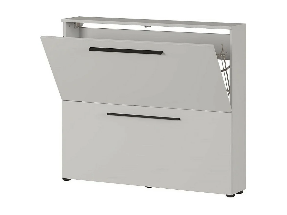 Scarpiera Andrea, Mobile multiuso a 2 ante a ribalta, Portascarpe da ingresso, 100% Made in Italy, cm 101x27h82, Bianco lucido