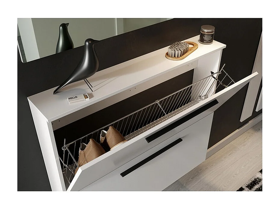 Dmora - Scarpiera Ape, cm 101x27h82, Bianco lucido