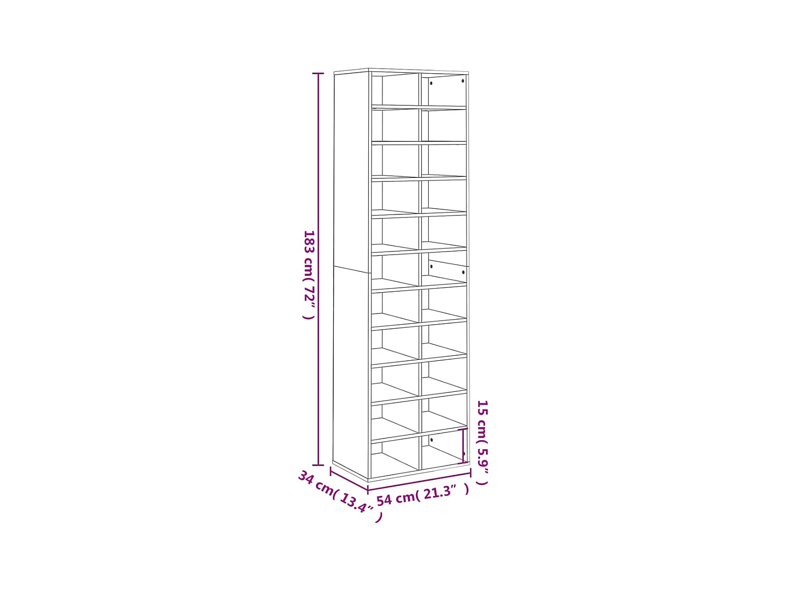 Scarpiera bianca 54x34x183 cm Legno ingegnerizzato