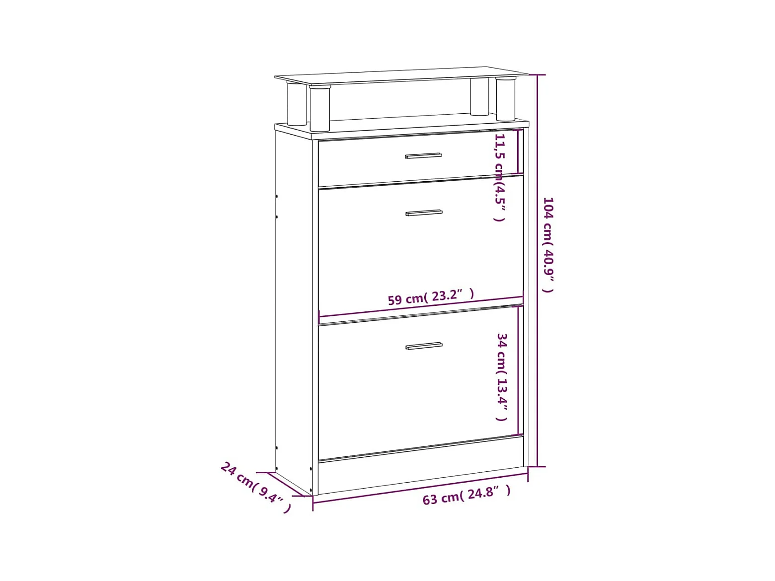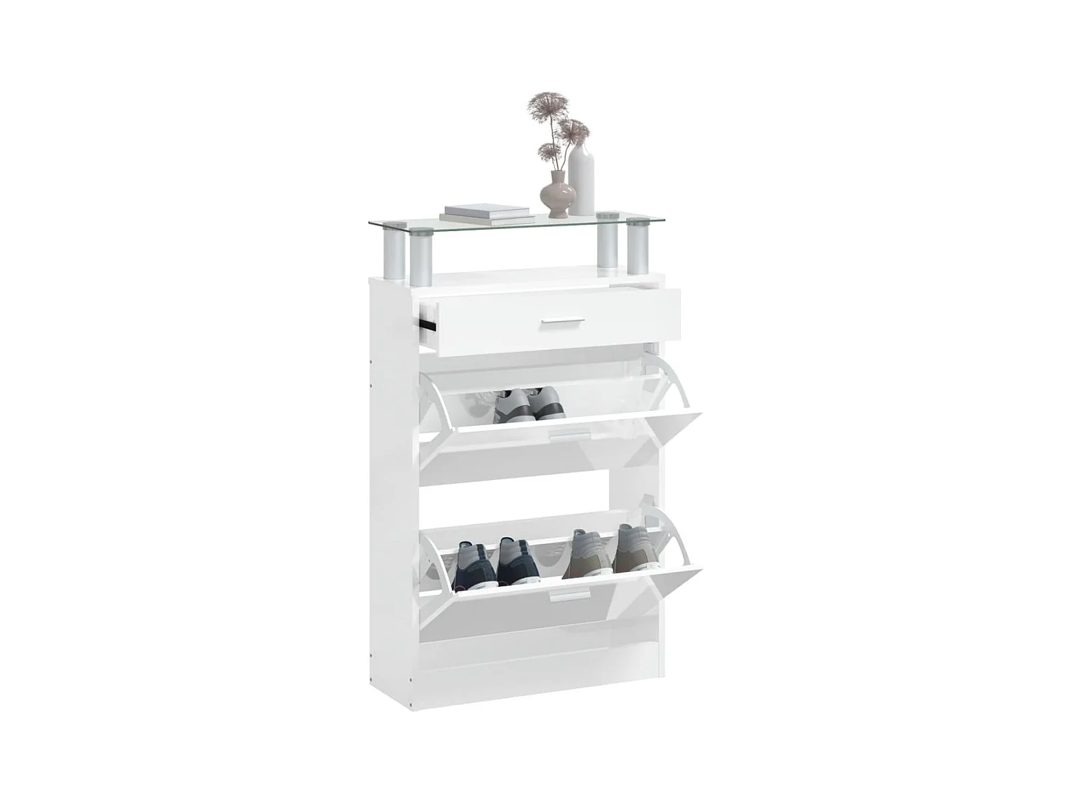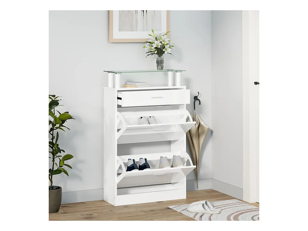 Scarpiera Bianco lucido 63x24x104 cm MDF