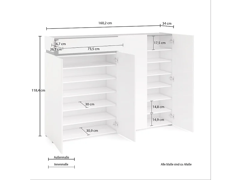 Scarpiera BOB a 4 ante con 1 cassetto con softclose e 4+5 ripiani made in Italy