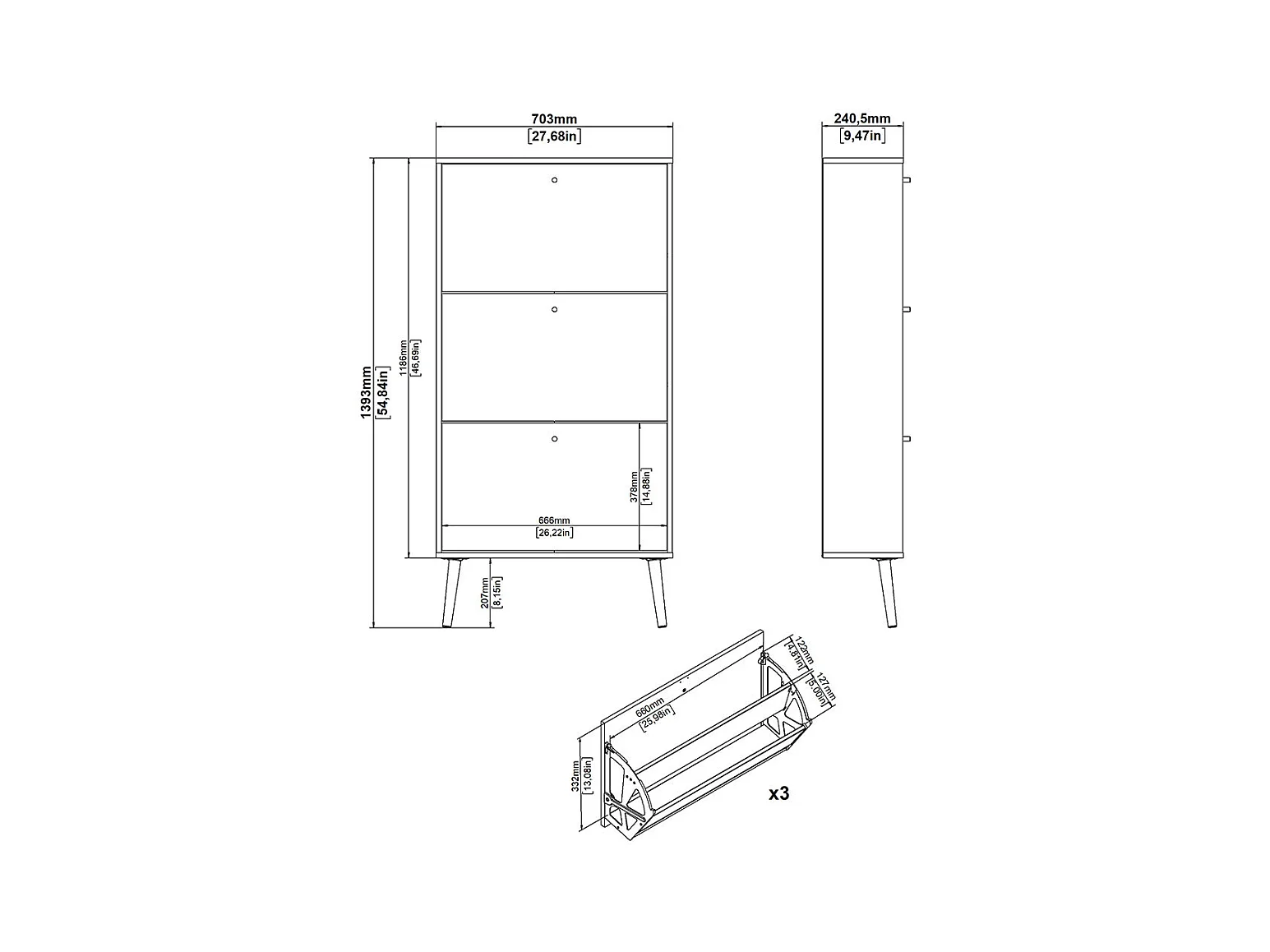 Scarpiera Bodo con 3 ante a soffietto bianca.