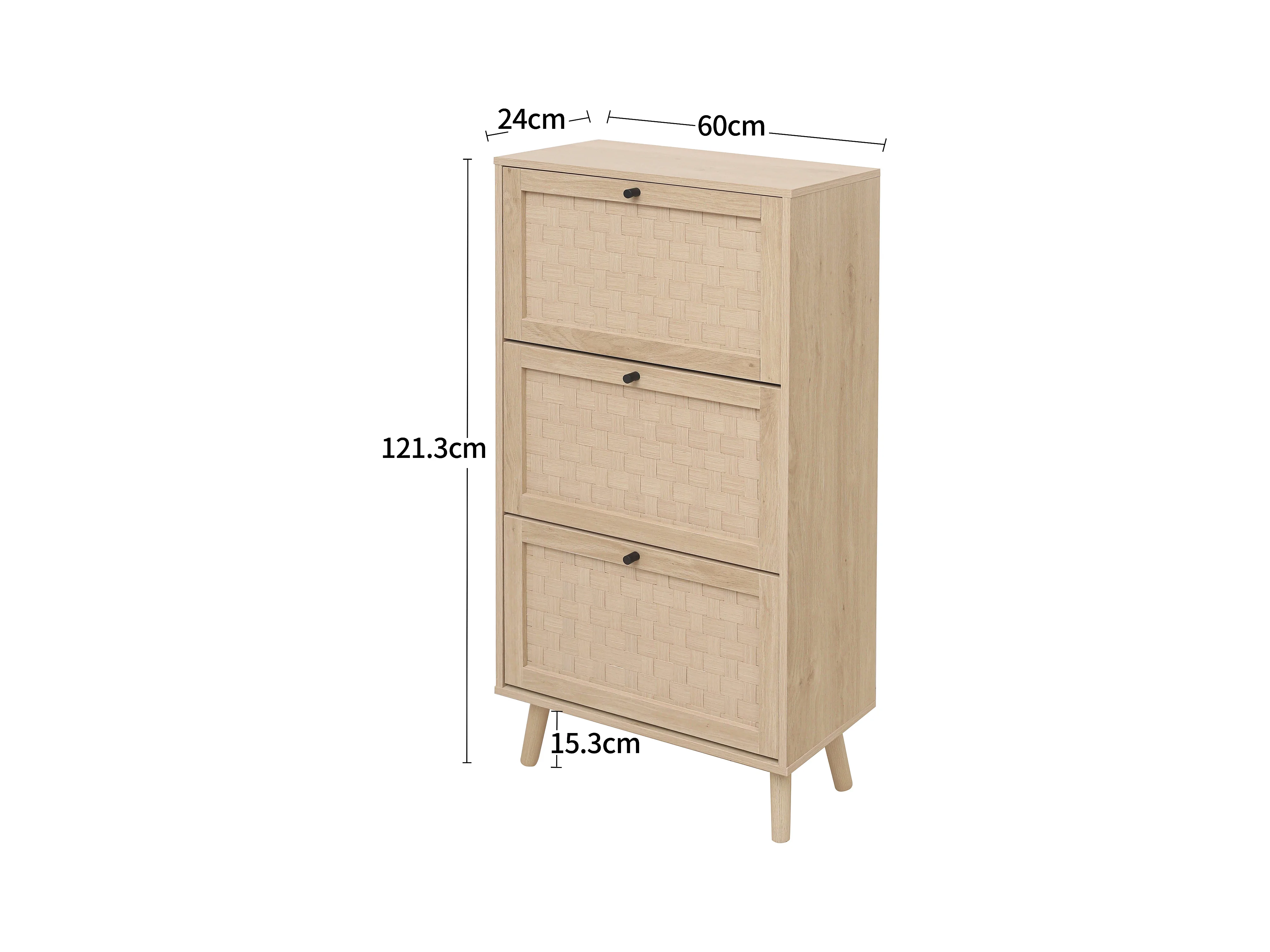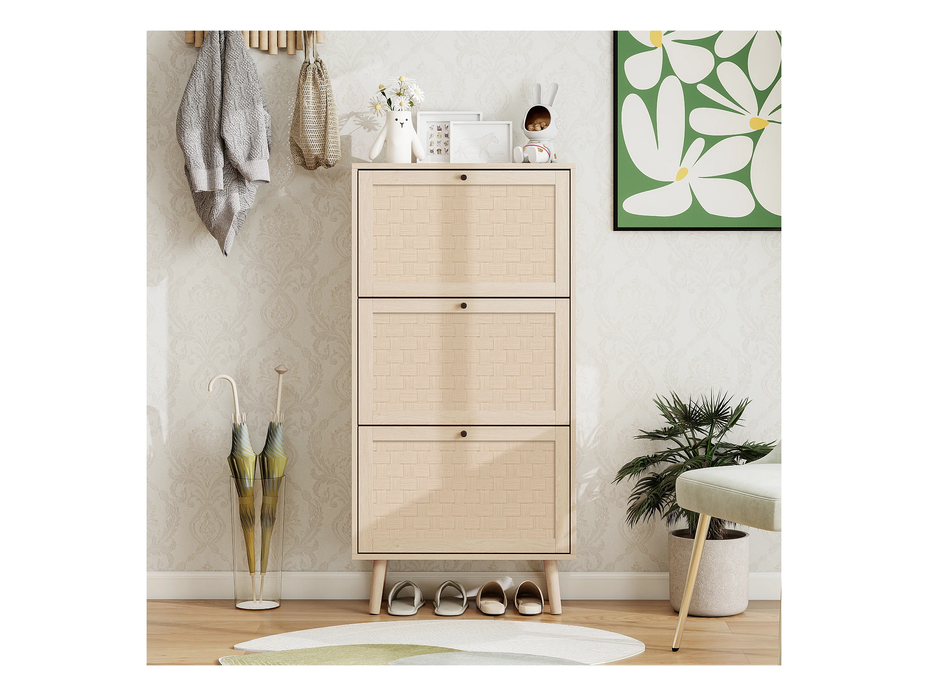 Scarpiera a due ante, 68 x 35 x 90 cm, effetto legno naturale, effetto rattan intrecciato, con contenitore, ideale per ingressi e corridoi