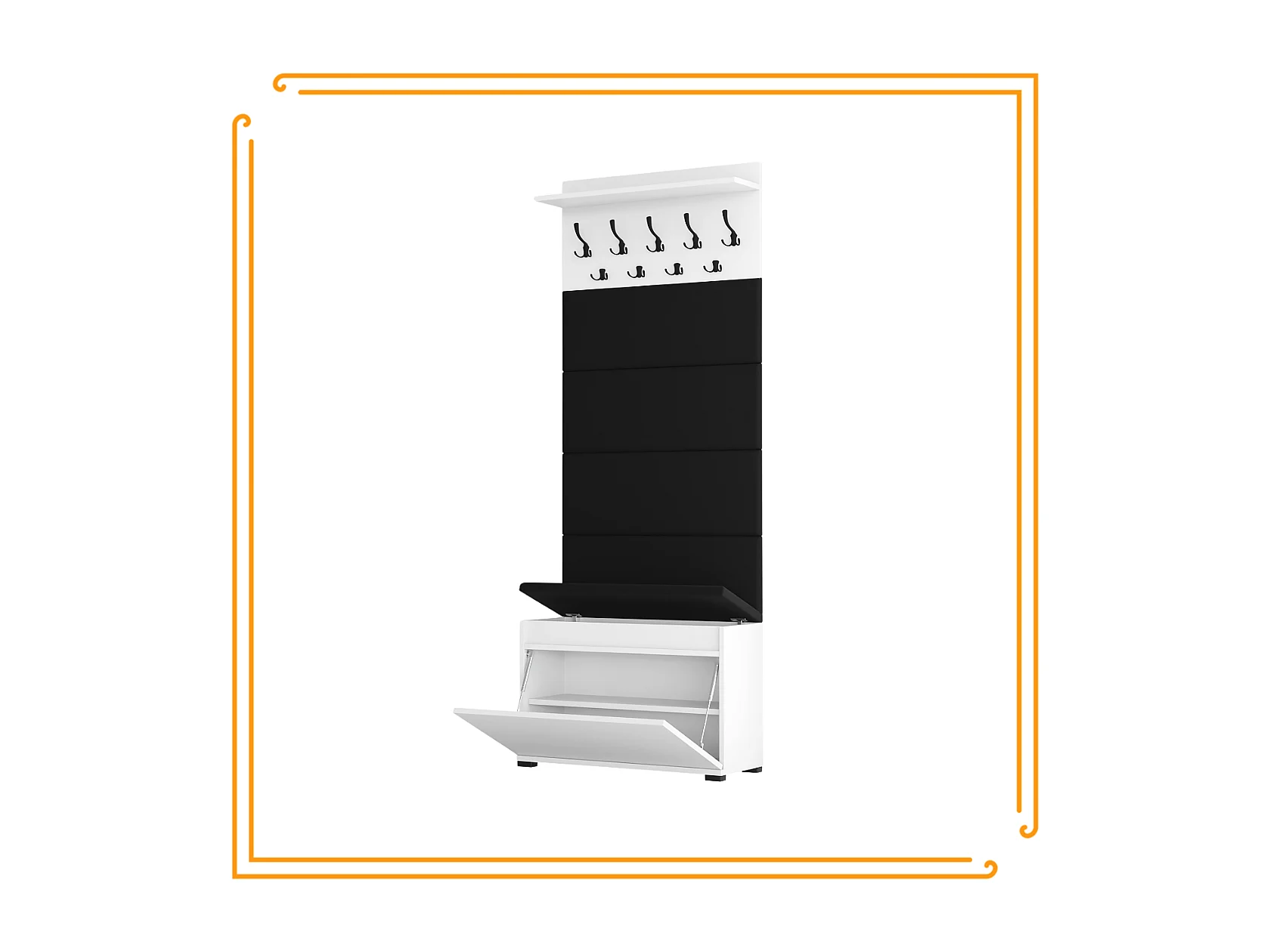 Scarpiera con panca imbottita e appendiabiti per ingresso