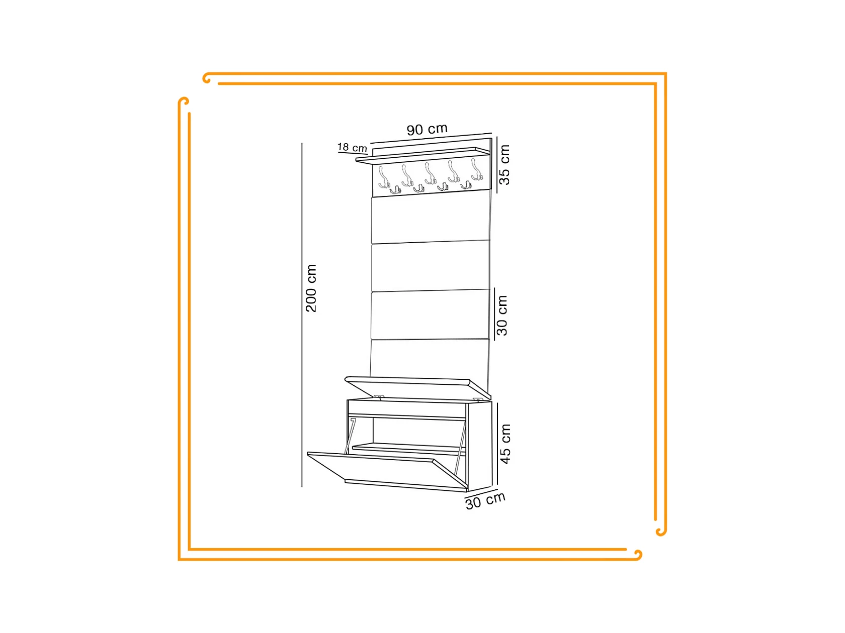 Scarpiera con panca imbottita e appendiabiti per ingresso