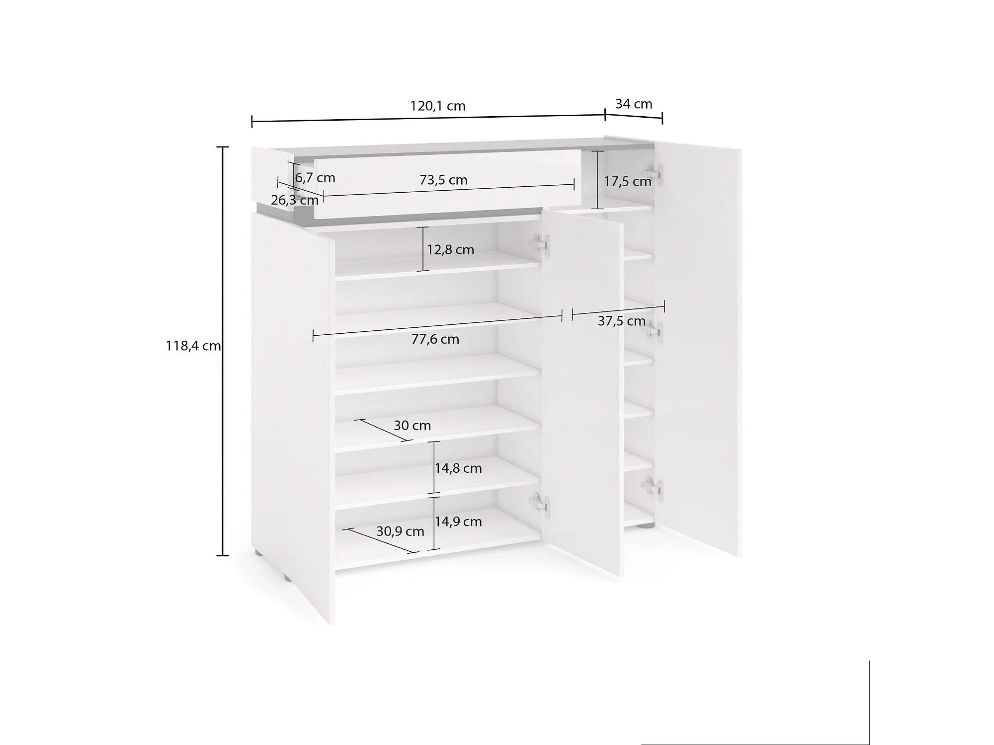 Scarpiera Joji, un Cassetto Made in Italy, 34x120x115h cm Bianco Lucido, Mobile Portascarpe