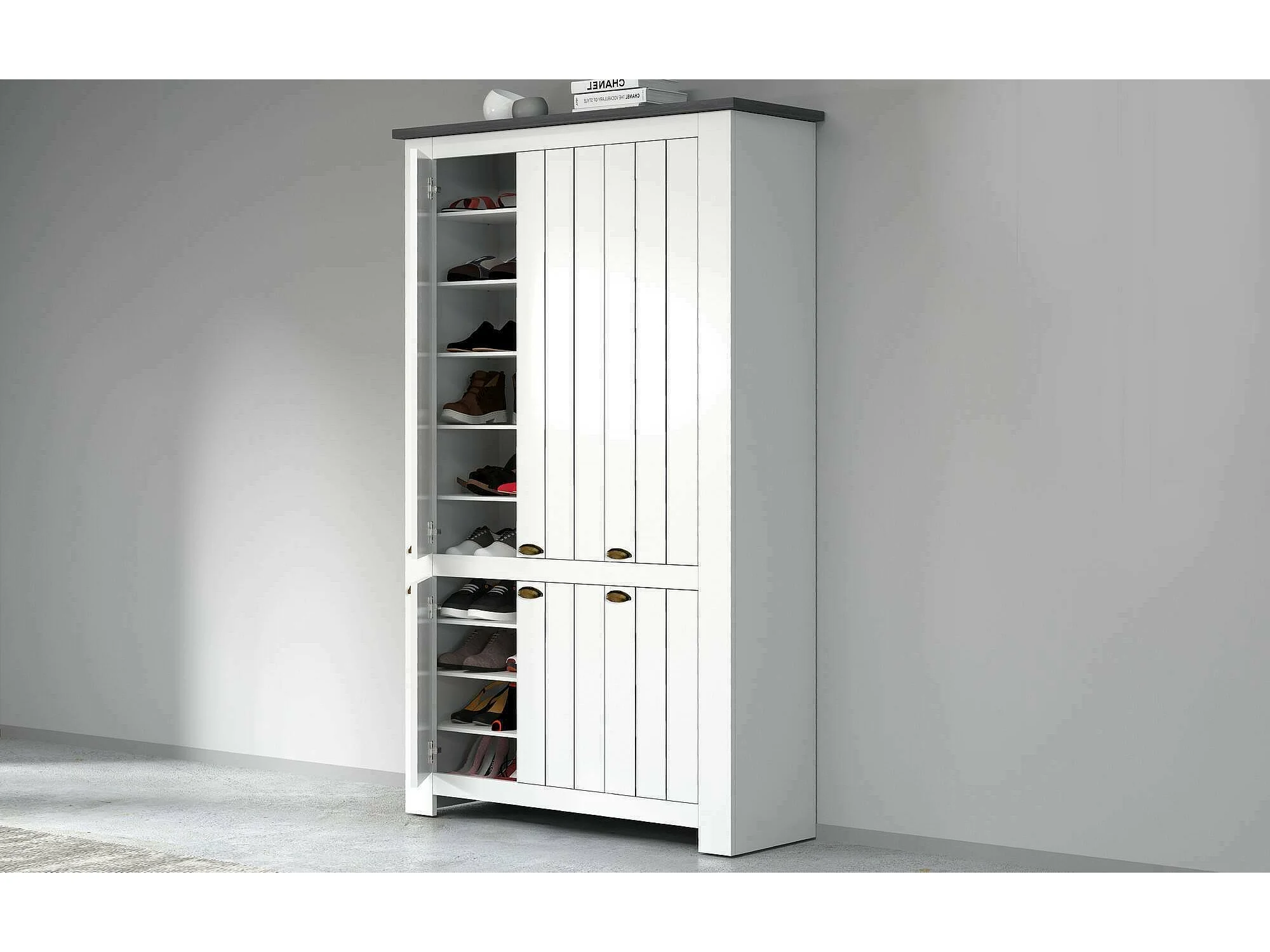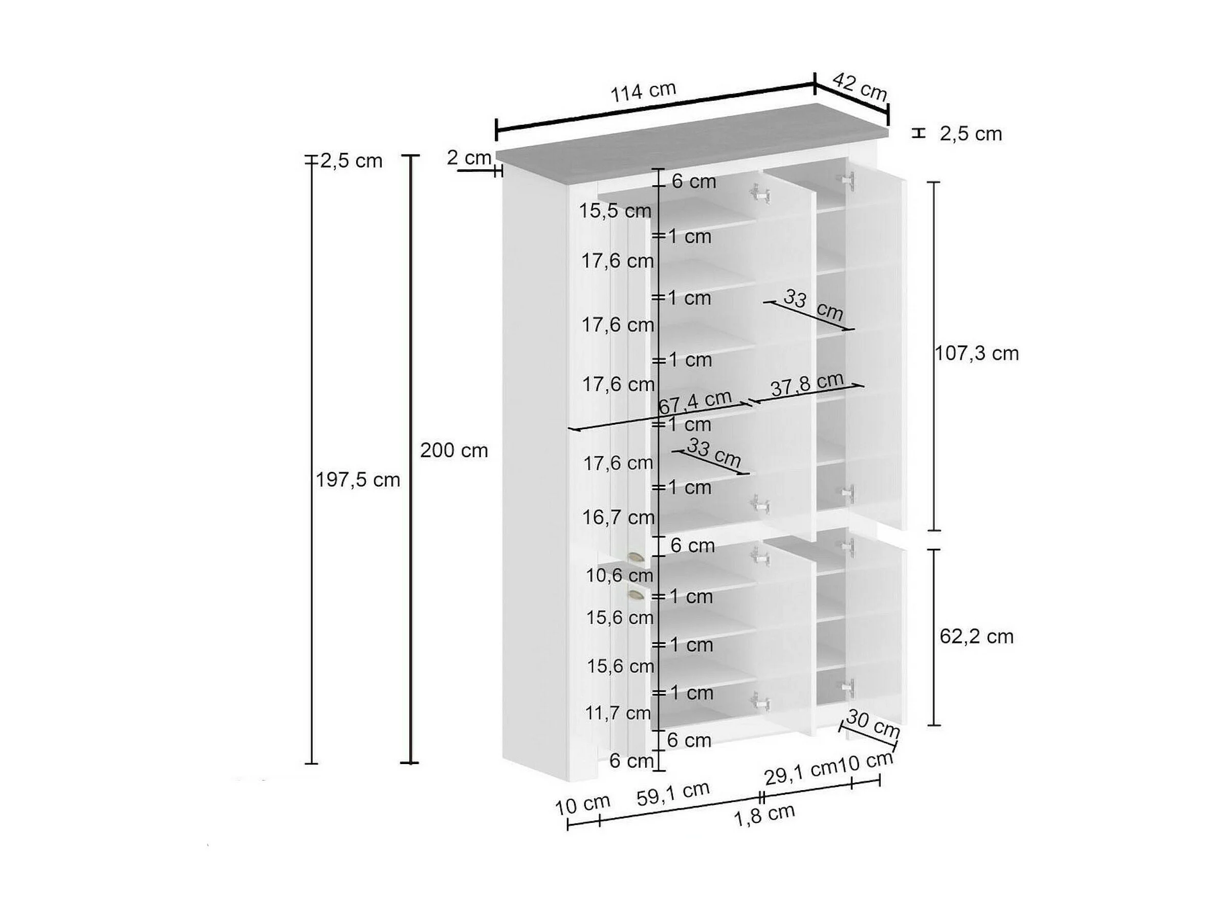 Scarpiera Apricena, 16 Ripiani Made in Italy, 42x114x200h cm Bianco, Mobile Portascarpe
